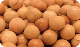 ぶつかったり、ころころ転がったりして遊べます。 - ●木の玉プール