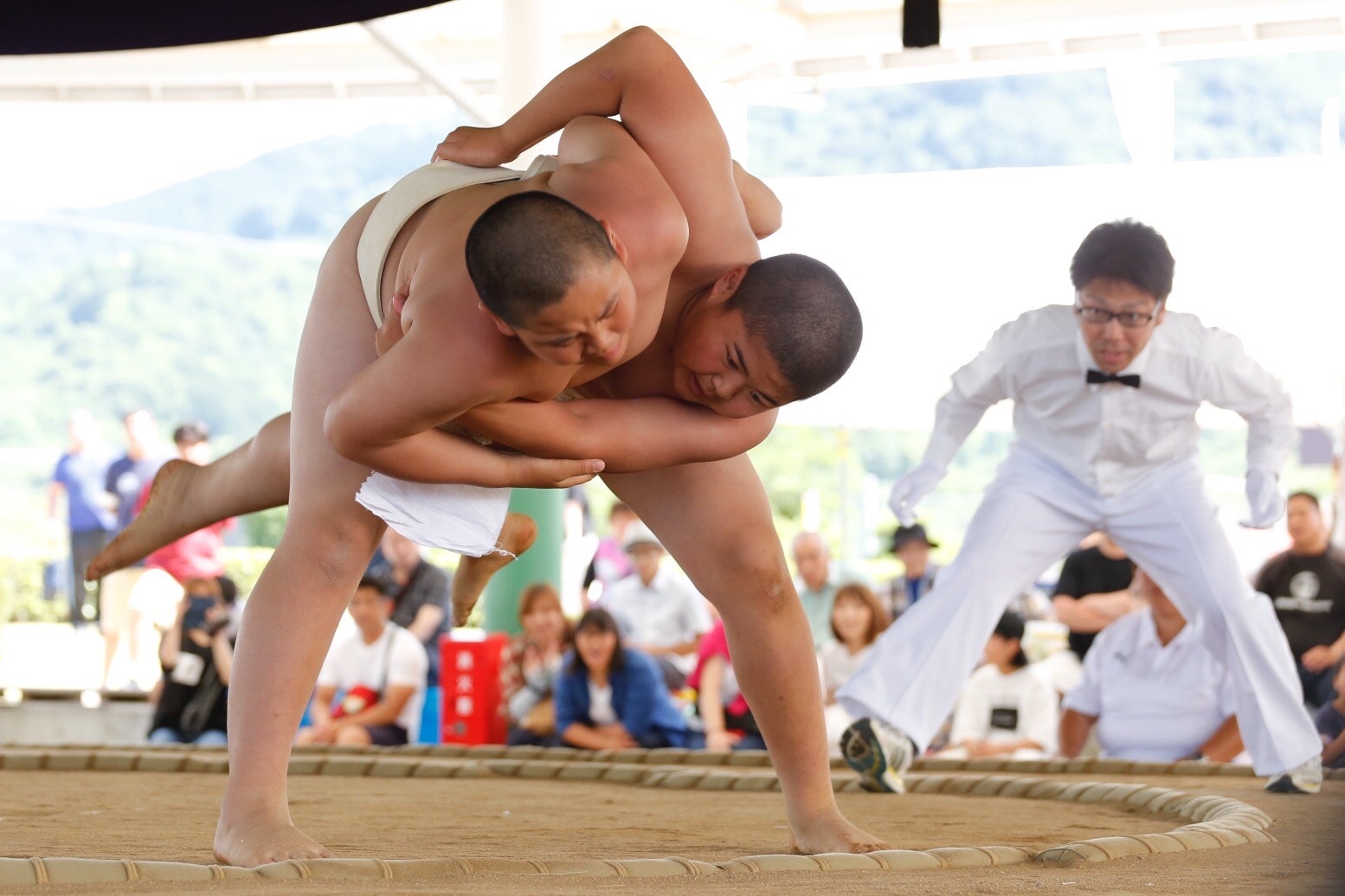 今大会は30年目の記念大会。さらに今年はえひめ国体の開催年でもあり、国体に出場する愛媛県代表選手が来場し、相撲をする上で大切な「礼法講習」を、子どもたちにご教授下さいました。