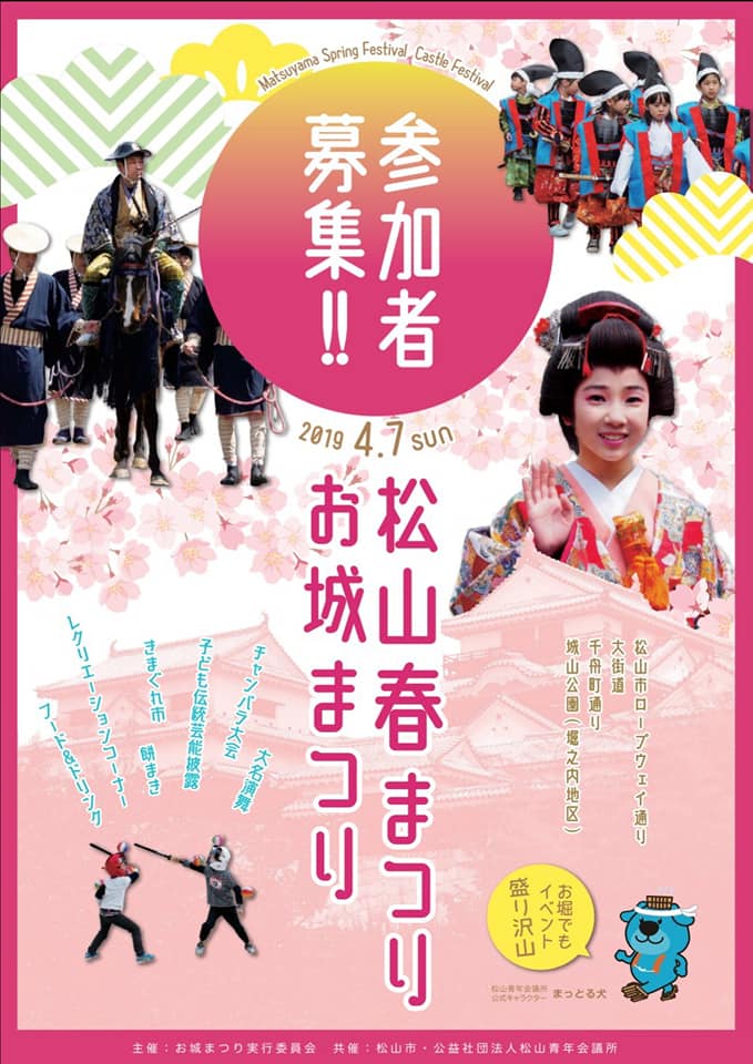 2019年3月3日(日) 本日は、お姫様・お殿様・大奥での参加希望の皆様と面接をさせていただいております。 きたる2019年4月7日(日) 松山春まつり お城まつり が開催されます! 本日は、お姫様・お殿様・大奥での参加希望の皆様と面接をさせていただいております。 大勢の方々にお集まりいただき、心より感謝申し上げます。 松山春まつり・お城まつりまであと「35日」です!! 皆様のご参加お待ちしております まつやまの未来を想う 公益社団法人松山青年会議所