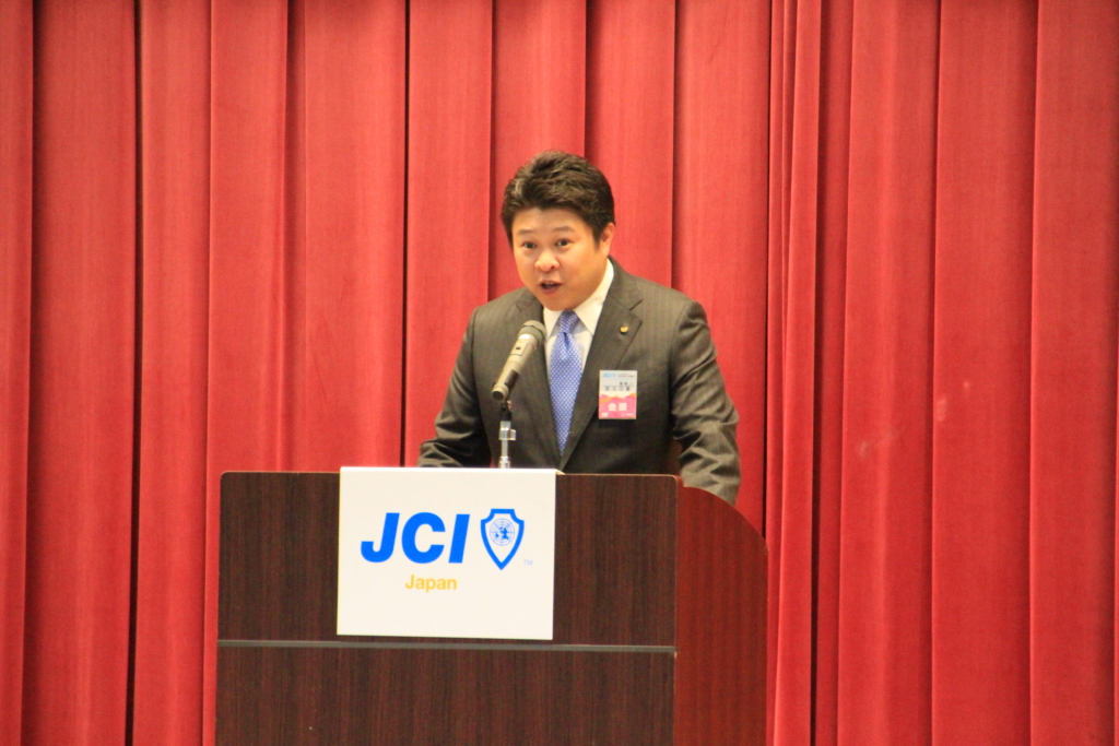 麻生会頭の挨拶を聞くJCI松山メンバー