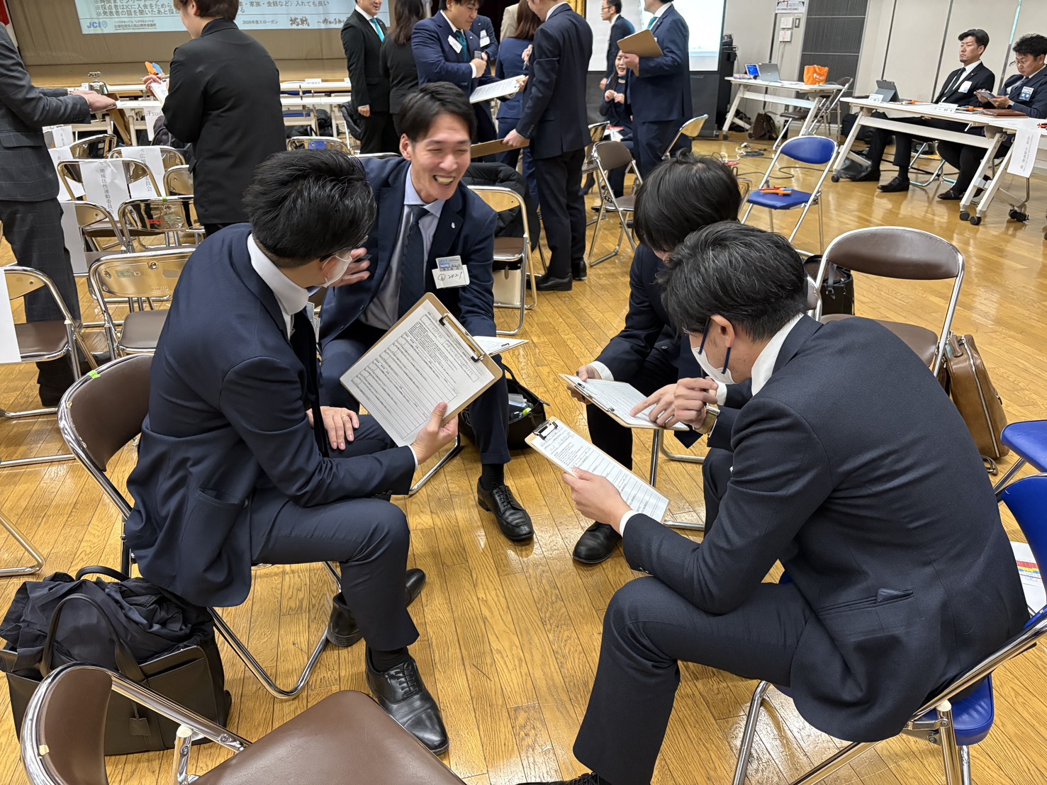 その後はグループワークに移りました。メンバー一人ひとりが「JCとは?」や「JCに入って良かったこと」をワークシートに書き出しそれを共有することで、それぞれの価値観や今後の課題については考えることができました。