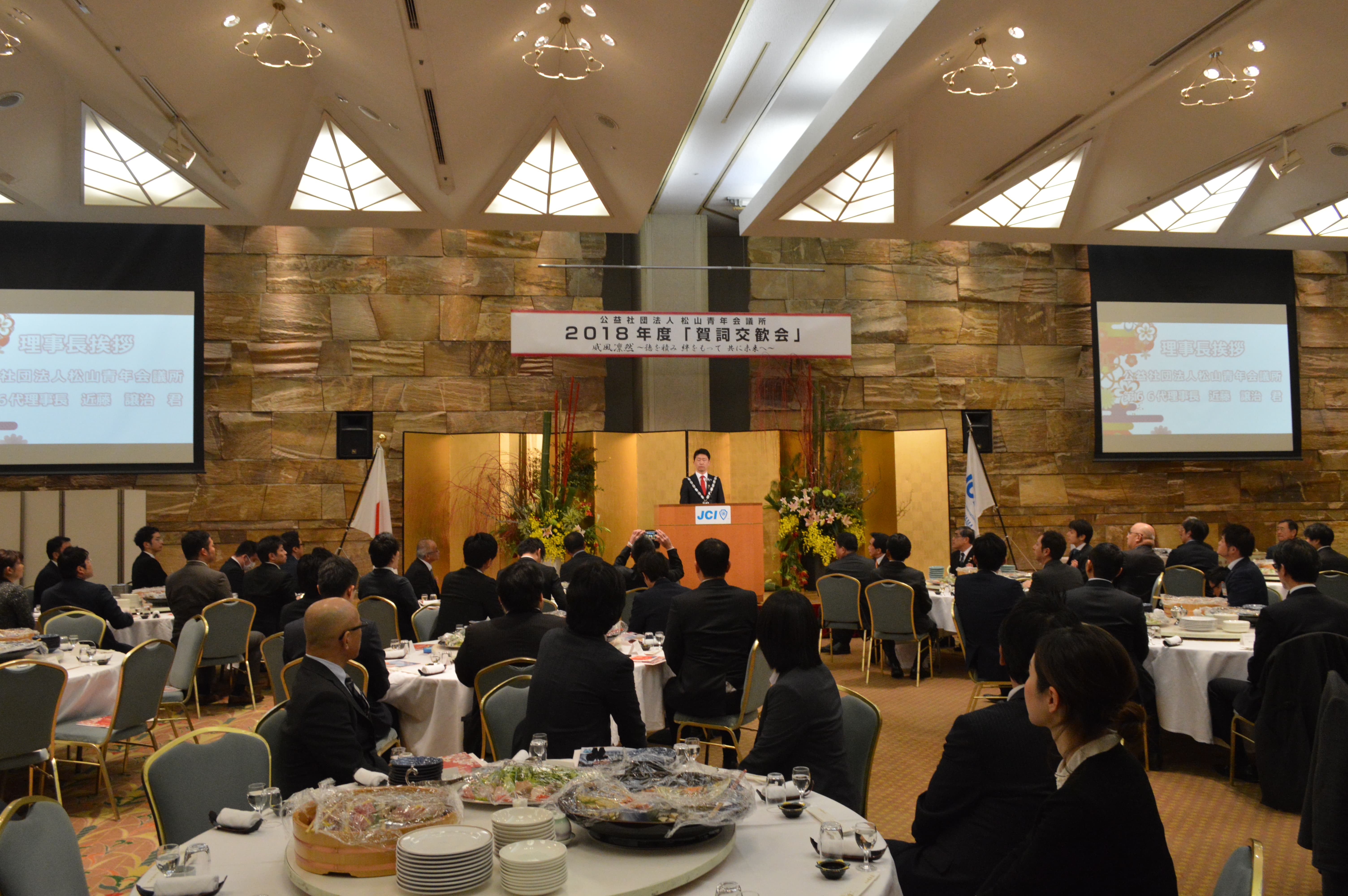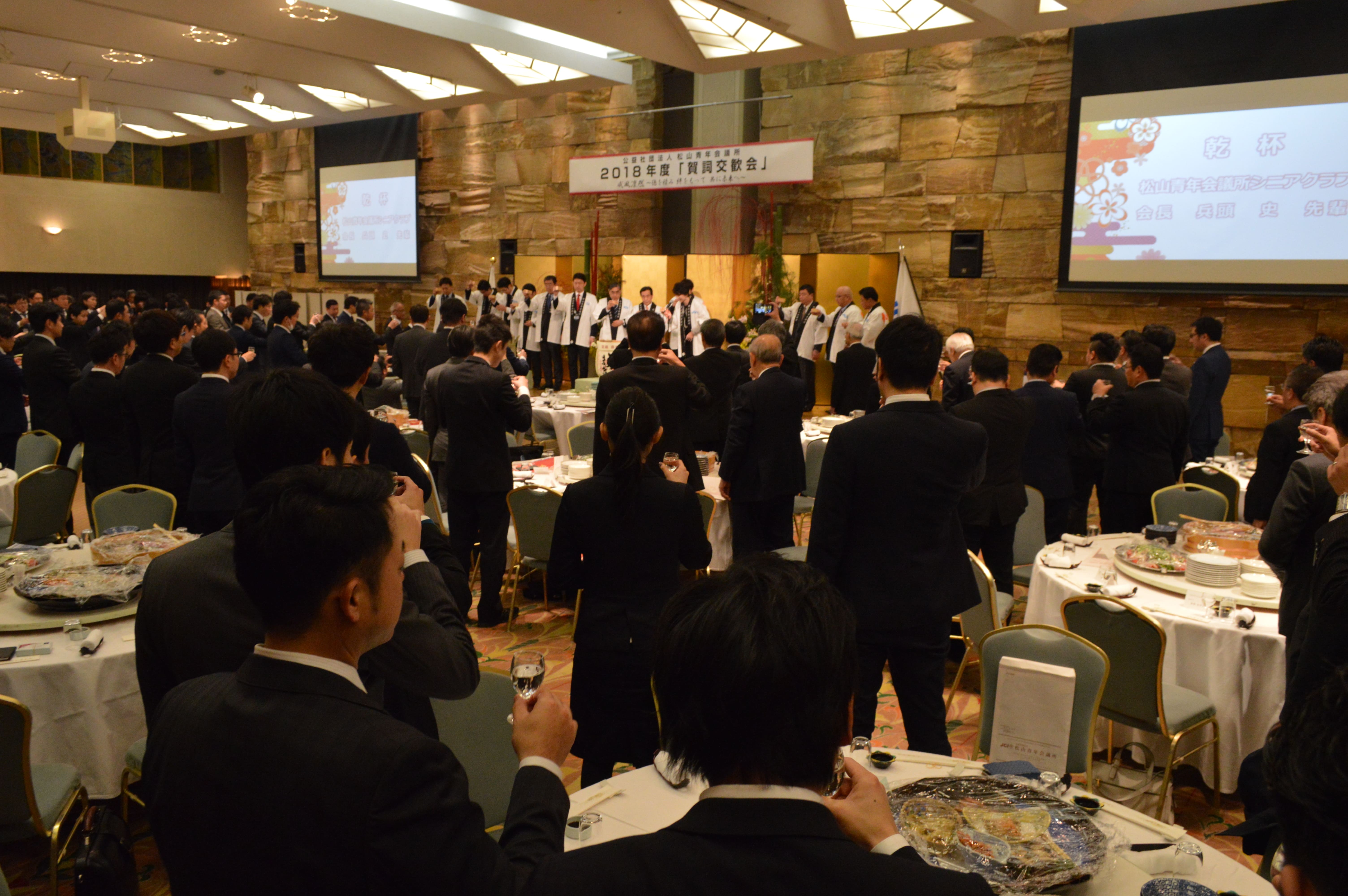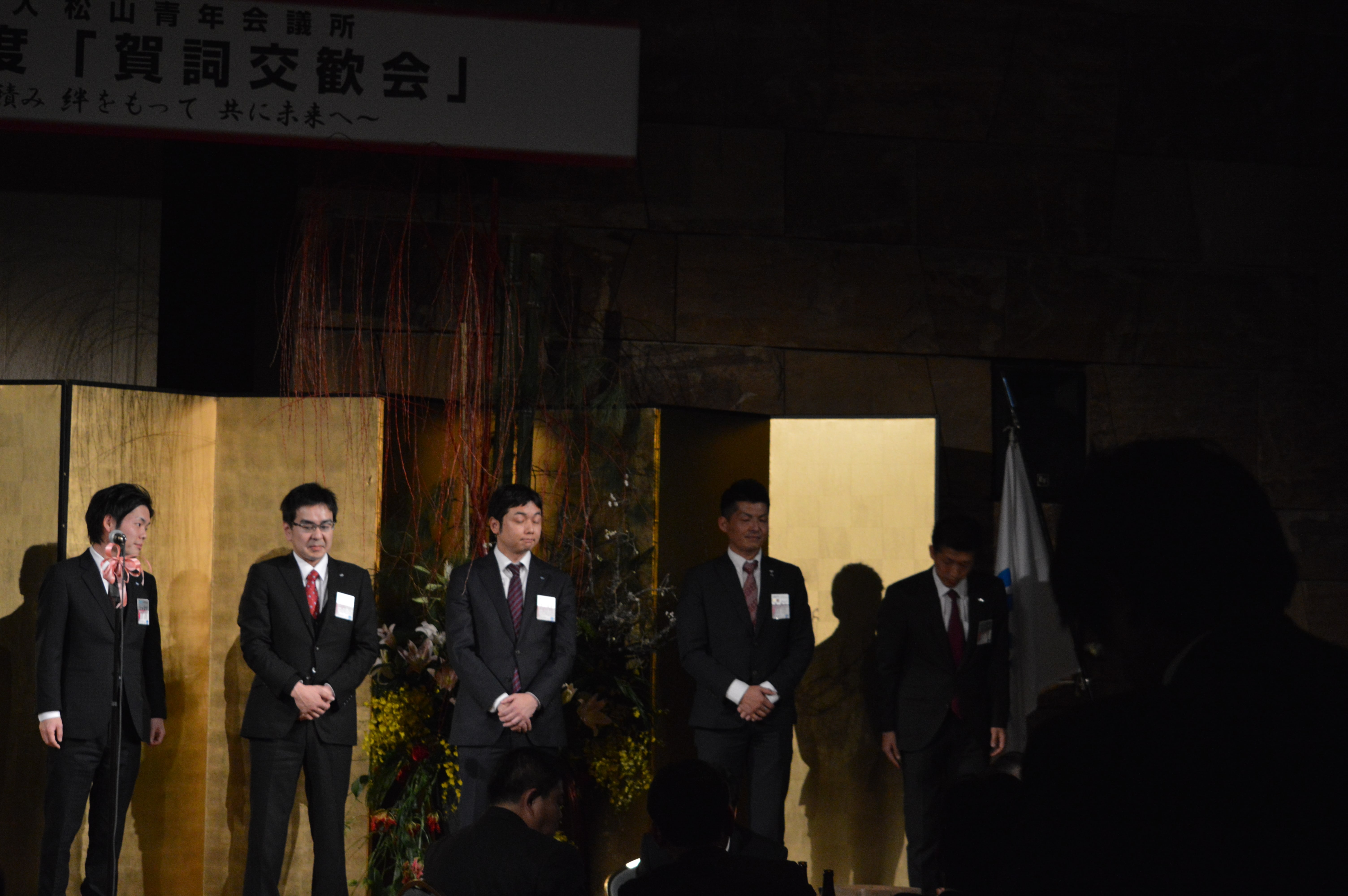 2018年度松山青年会議所の賀詞交歓会は、松山青年会議所シニアクラブ先輩諸兄をはじめ、遠くは青森八戸市、四国の各地域の青年会議所理事長・メンバー、関係諸団体の方々にもお越しいただき、盛大に開催されました。