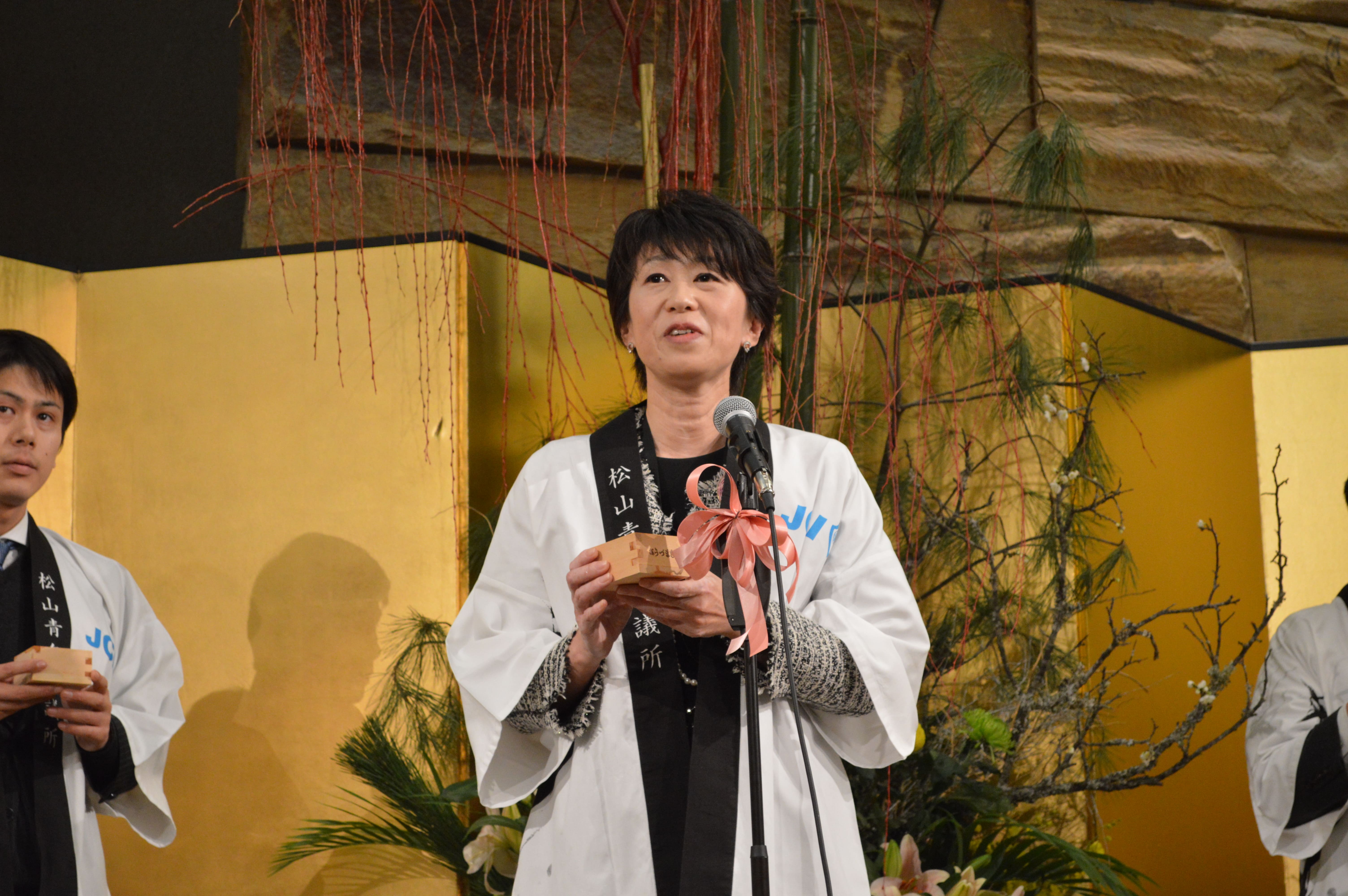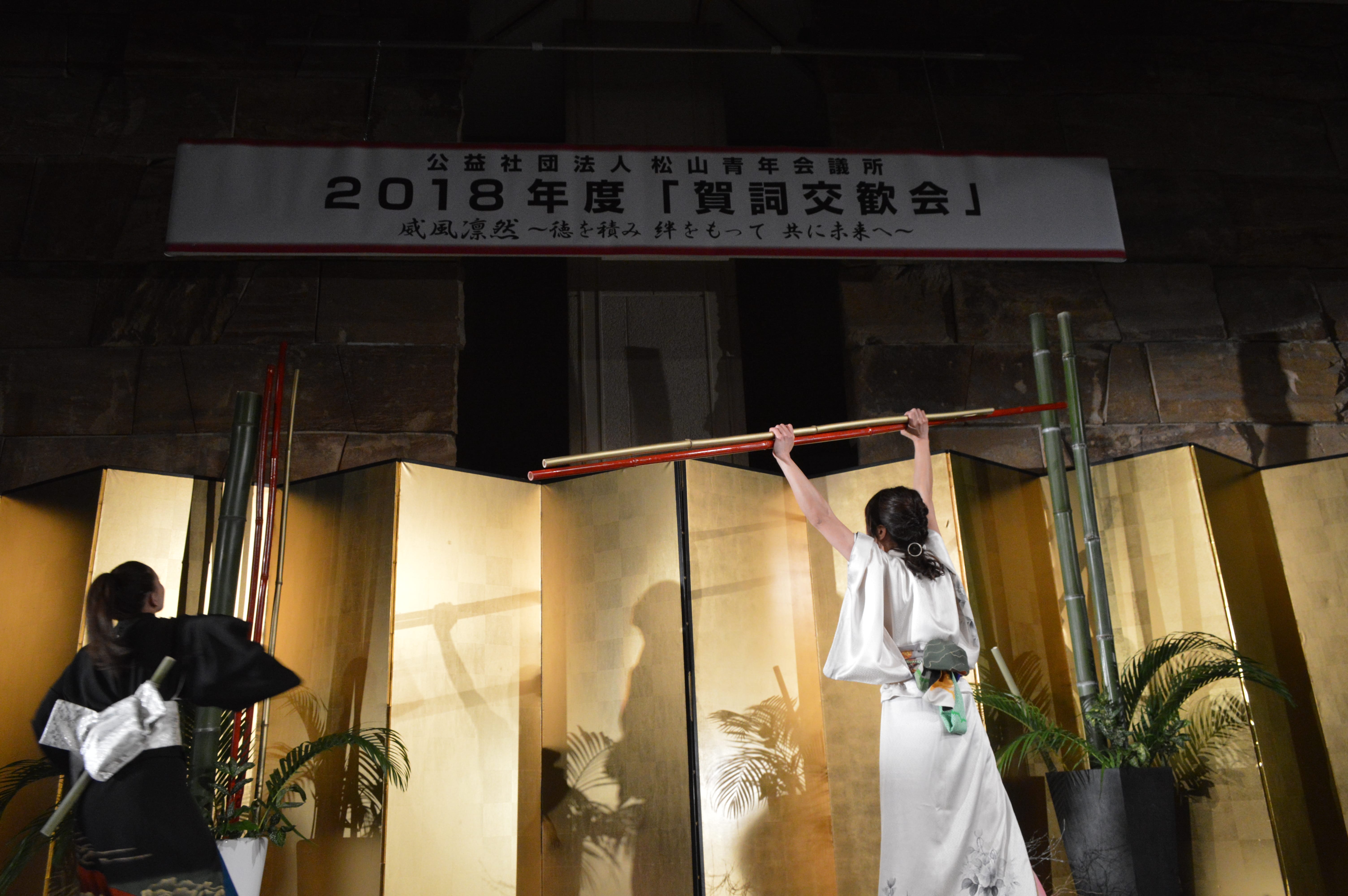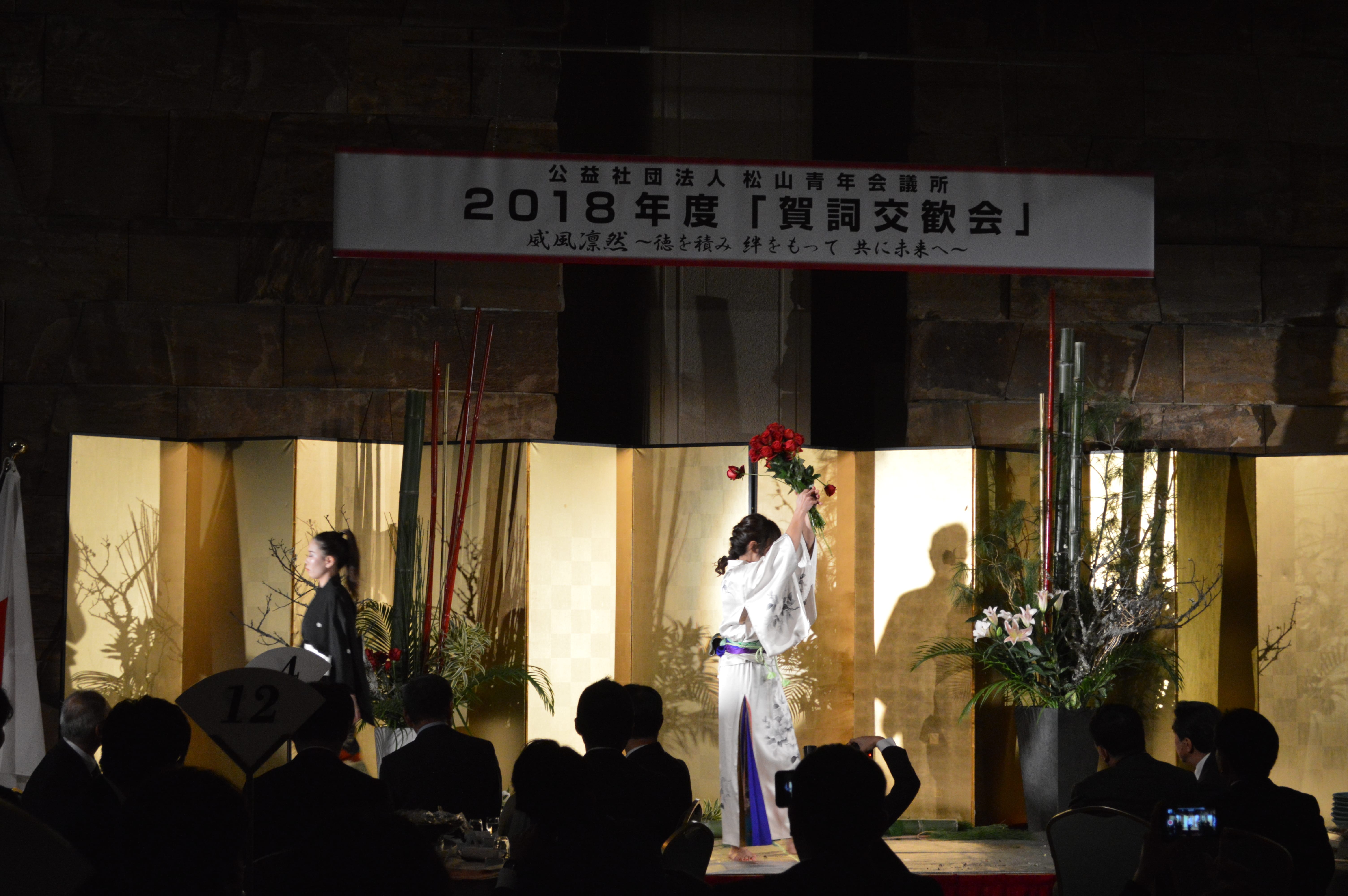 オープニングアトラクションでは松山青年会議所シニアクラブ田中先輩による「生け花」の華道演出が行われ、2018年の新たな門出を華やかに飾っていただきました。