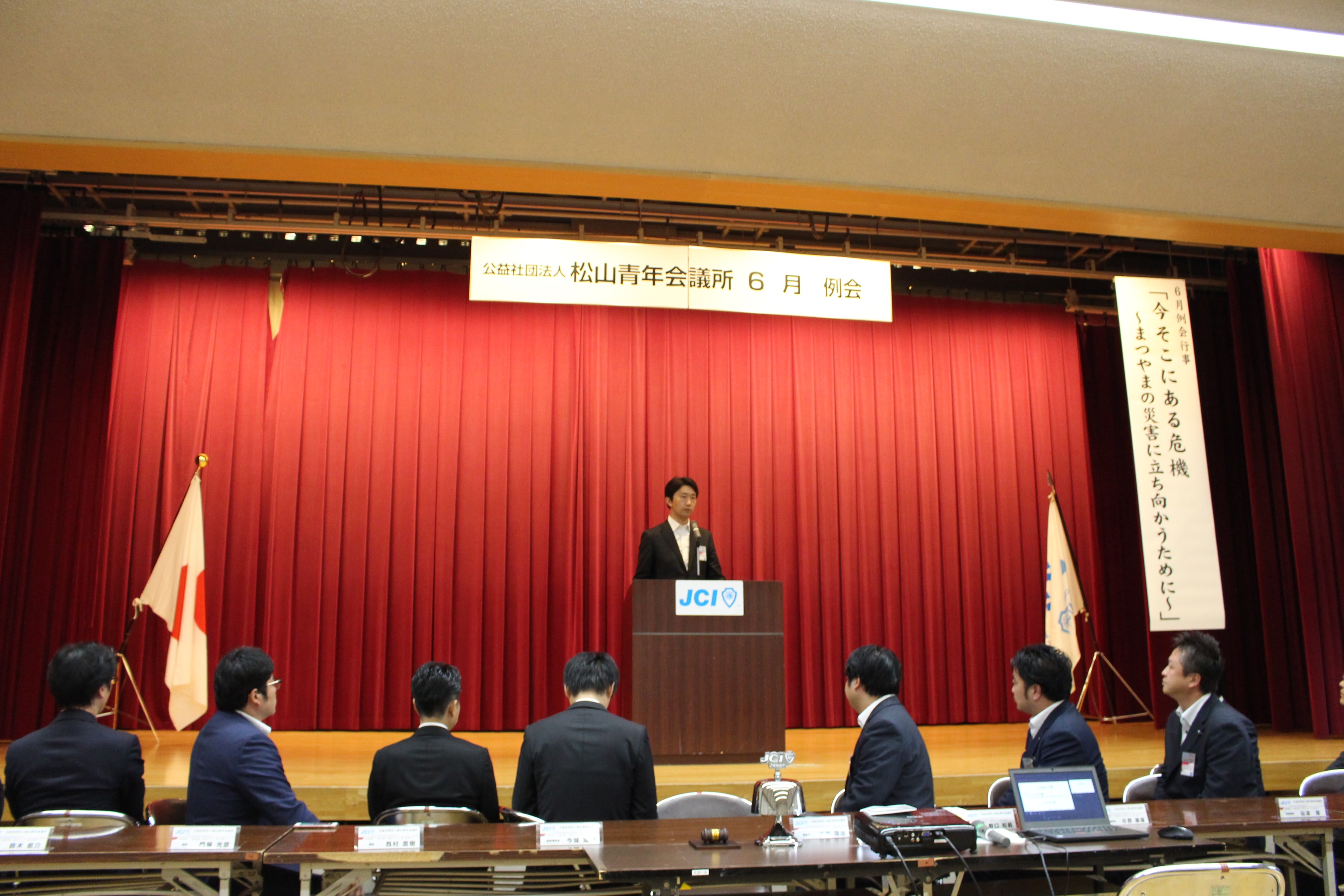 6月19日(火)公益社団法人松山青年会議所6月例会「今そこにある危機〜まつやまの災害に立ち向かうために〜」が拡大推進会議の設えのもと開催されました。