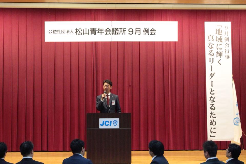 2018年9月18日(火) 9月例会「地域に輝く真なるリーダーとなるために」 9月18日(火)公益社団法人松山青年会議所9月例会「地域に輝く真なるリーダーとなるために」が松山青少年センターにて、品格ある人財育成委員会の設えのもと開催されました。 品格について、マナーや常識などを学んだ3月例会を踏まえ、松山青年会議所に対するアンケート結果の報告やディベート(討論ゲーム)が行われ、自分を振り返り、鍛え、未来を創造することを目的に3部構成で実施されました。 例会を通じて、一人ひとりが品格とは何かを考え、理念をもち、今後の松山青年会議所として何を目指すか考える貴重な場となりました。
