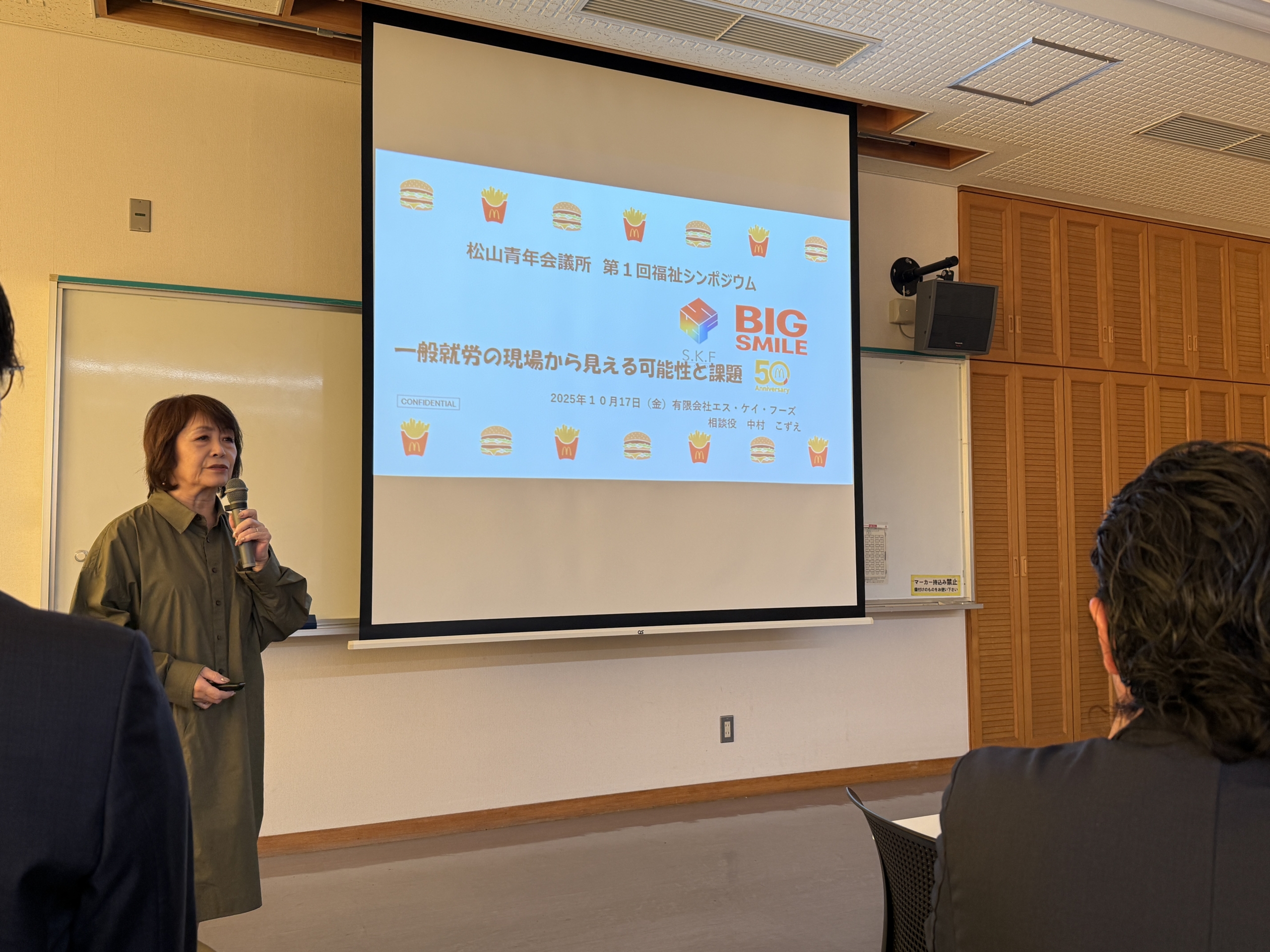 第1部では、支援者であり雇用者でもある株式会社フェローシステム様を講師に招き、支援と雇用がどう結びつくのか、企業と障がい者が共に成長する現場の声をお話しいただきました。