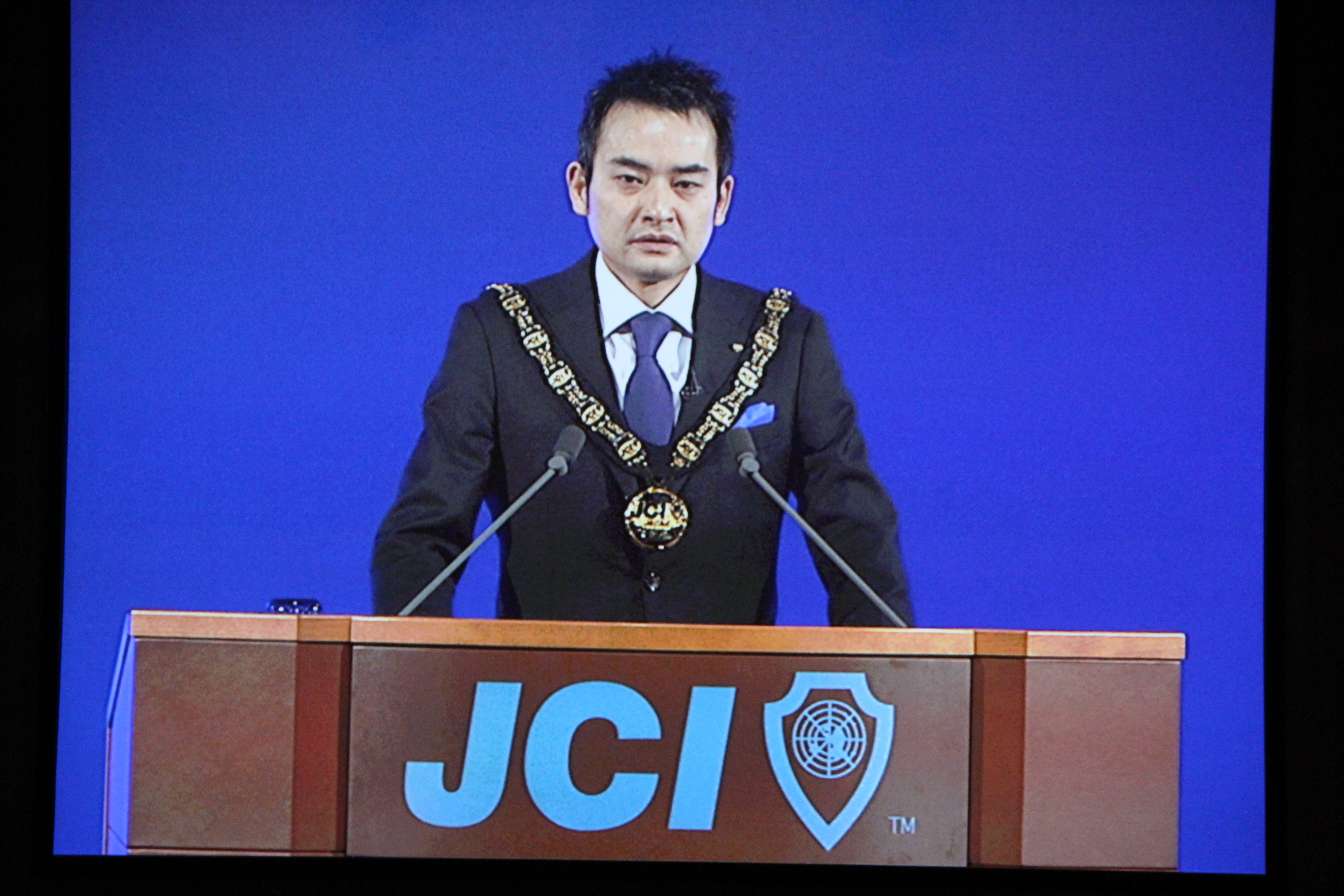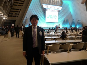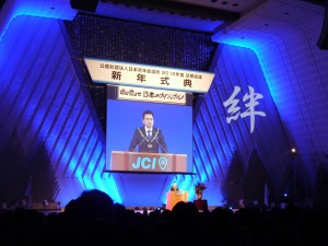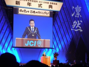2012年1月21日に国際会館メインホールにて開催の第138回総会には帽子理事長他日本全国から各地会員会議所理事長が集まりました。最終日22日の新年式典には日本全国から約3,000名の会員が参加いたしました。本年度の京都会議では日本JCは復興創造と2012年度日本青年会議所の運動の方向性を2本の柱として発信されました。21日の総会では昨年3月に全国のメンバーすべてが持った東日本復興の気持ちを決して忘れてはいけないという強い決意のもと、「東日本大震災復興指針」を発表し、アサヒビール名誉顧問中條高徳様の基調講演、青山社中筆頭代表朝比奈一郎様と井川会頭との対談が行われたメインフォーラムをはじめとする各フォーラムでは国家や地域のあり方の発信が行われました。また、22日の新年式典においては、井川会頭の所信表明があり、私たちが青年として「変わらないために変わる」行動を起こすことによって「凛然とした誇りある国」日本が創造できることを、全国701のLOMの理事長をはじめメンバーの皆様に力強く語られました。新年式典にて流されたVTRは松山JCシニアクラブで直前広報委員長である山本修平先輩が中心となって製作されたそうで井川会頭の思いが参加者の心に響く大変すばらしい映像でした。その他、セミナーやブースによる各事業の説明等を通して、LOMに有益な情報もあり今後のLOMの運動発信と運営に大変役立つ内容でした。