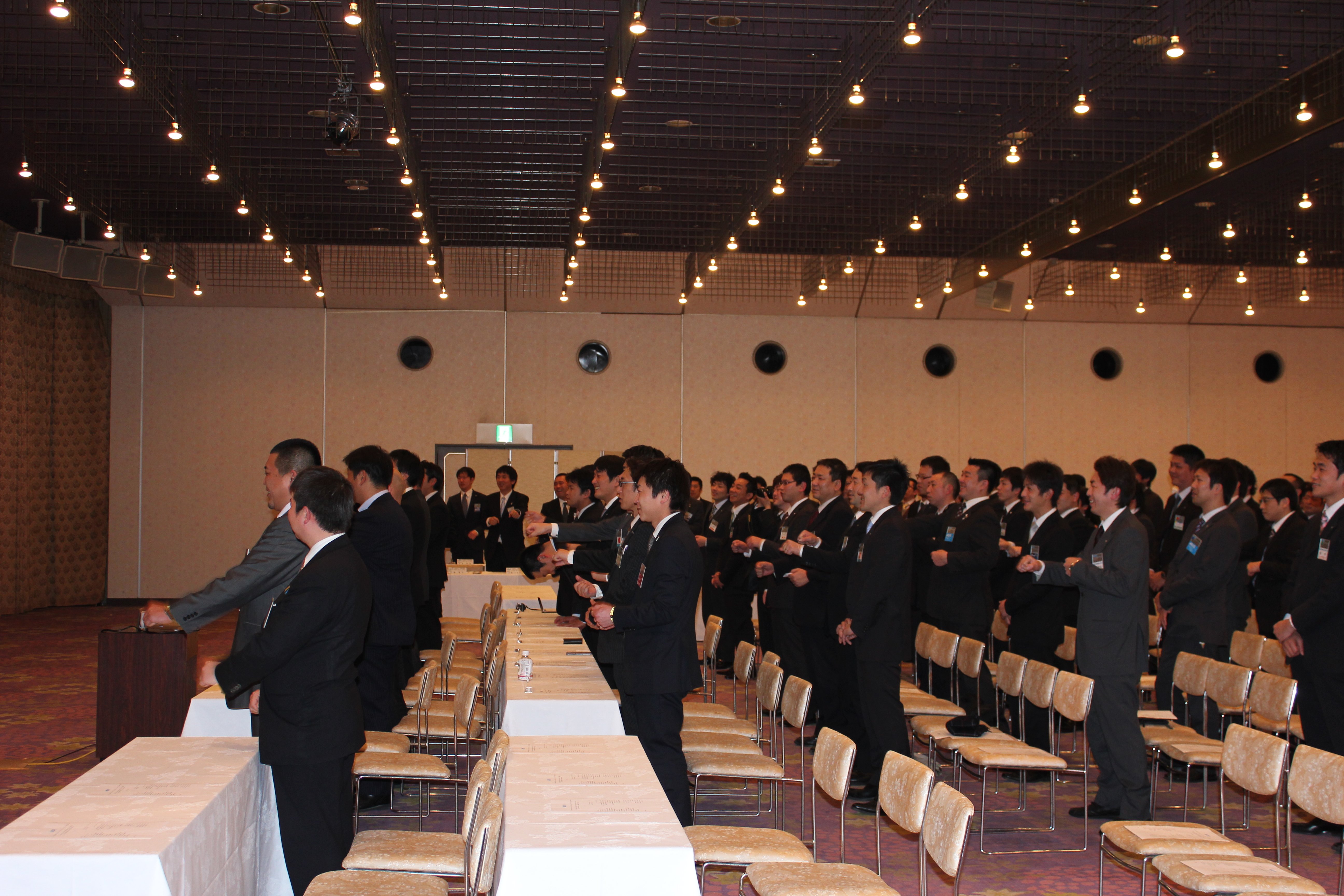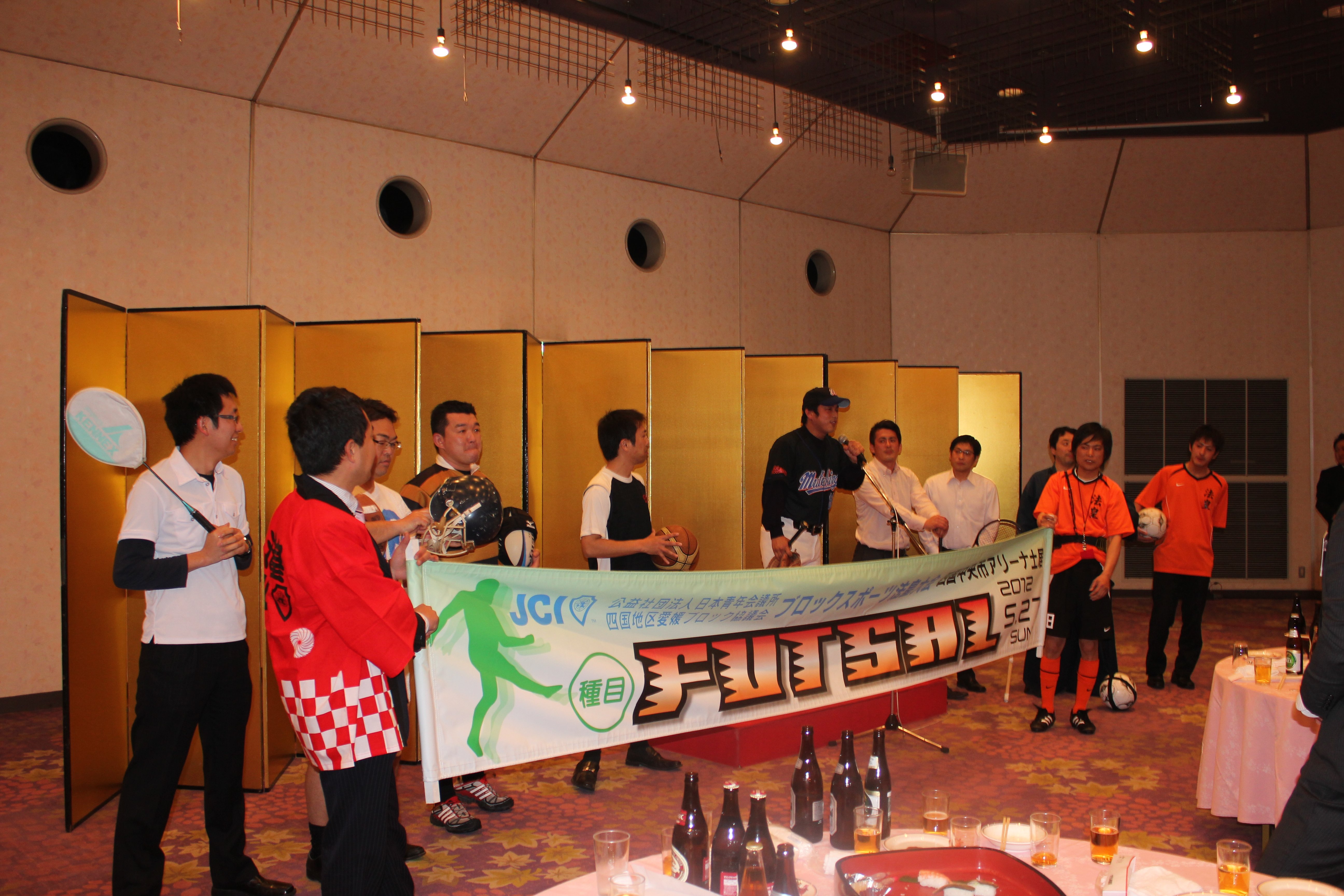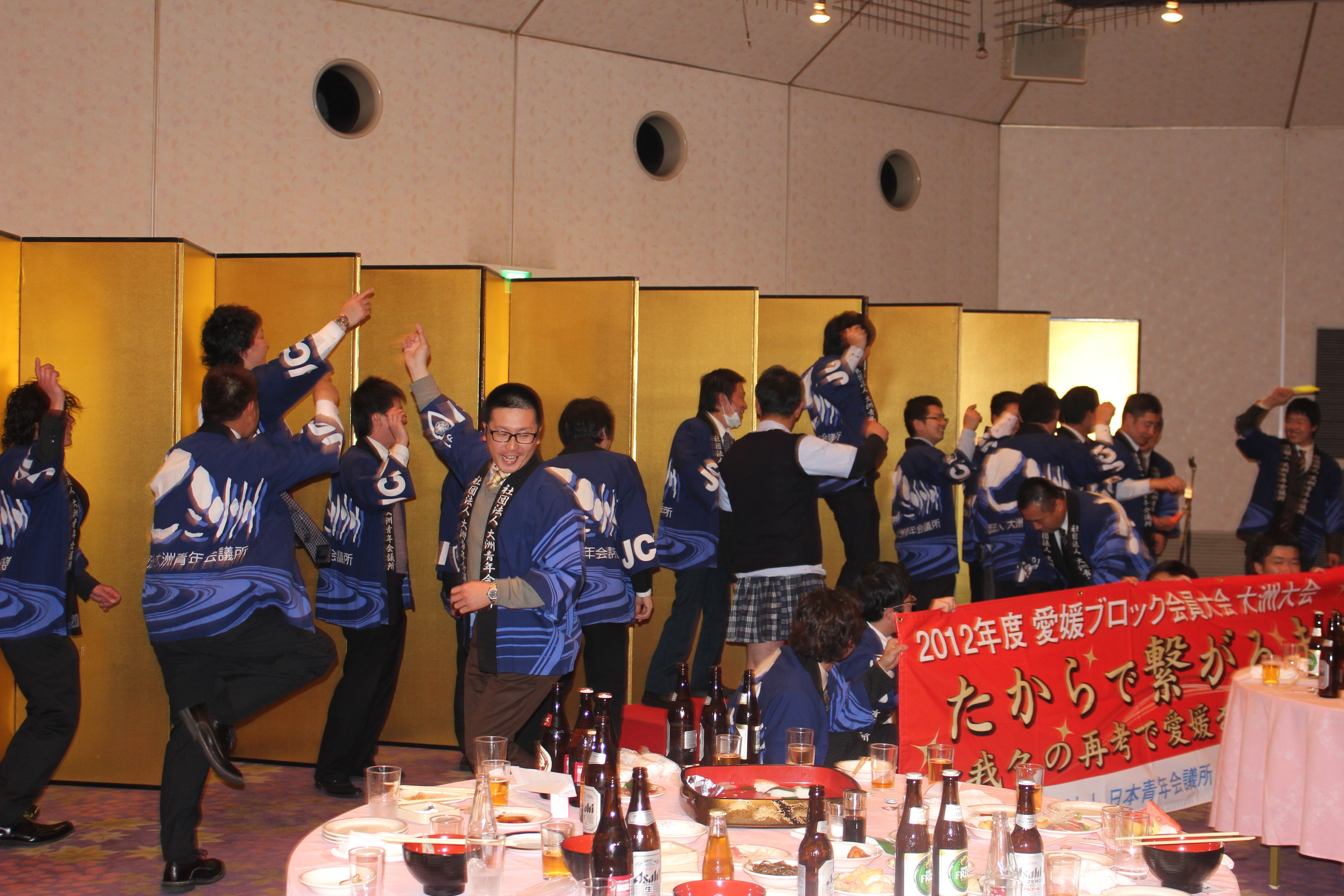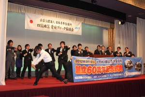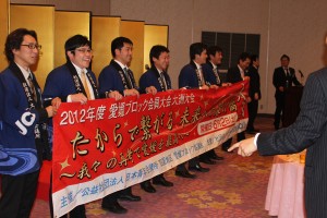 2月25日(土)17時よりホテル奥道後にて公益社団法人日本青年会議所 四国地区愛媛ブロック協議会2012年度第1回愛媛ブロック協議会全体会議が開催されました。会は『「変わらないために変わる」あつくサスティナブルな愛媛の実現』のスローガン唱和から始まり、ブロック会長挨拶では『私はJCを裏切らない。』との藤田会長の信念が宿った気概のある言葉が一瞬にして会場を一つにまとめました。その言葉に『ことばのちから』を感じました。そして直前会長挨拶の後、帽子理事長より開催地LOM理事長挨拶があり各地より参加のメンバーを歓迎いたしました。PRタイムでは創立60周年実行委員会古川委員長よりPRがあり同委員会メンバーの岡田亮良君のオスオスオスの掛け声でPRし会場を沸かせました。8月1日はハーイの日と皆さんに覚えてもらうよう明るく呼びかけました。各分科会報告では日本のプリンシプル創造委員会委員長として出向している歴史文化委員会の伊藤副委員長より分科会報告が行われました。全体会も無事に終了し、その後もメンバー間で遅くまで懇親が深められました。多くのメンバーが自分もJCを裏切らないと覚悟を決めた有意義な会となりました。