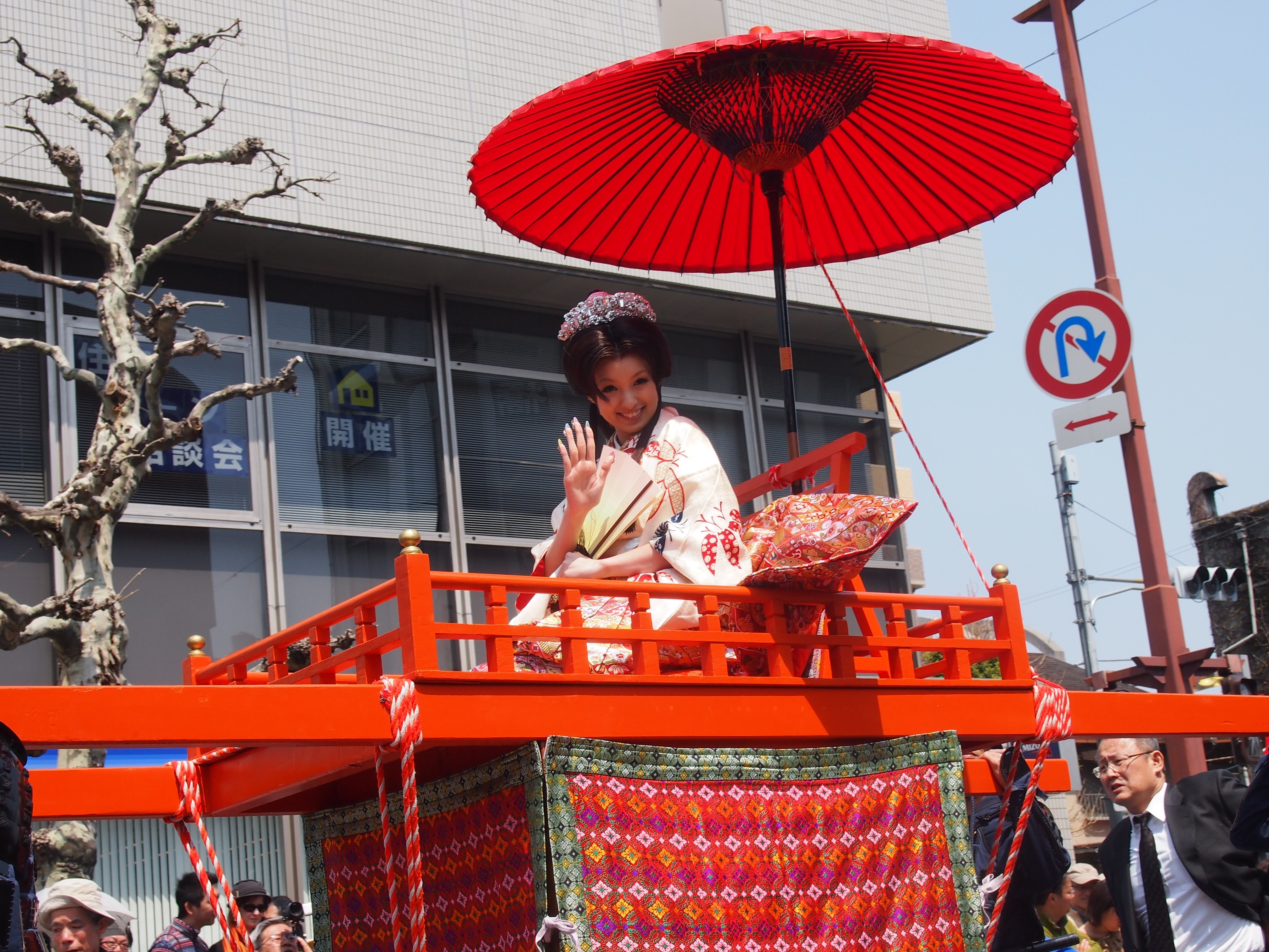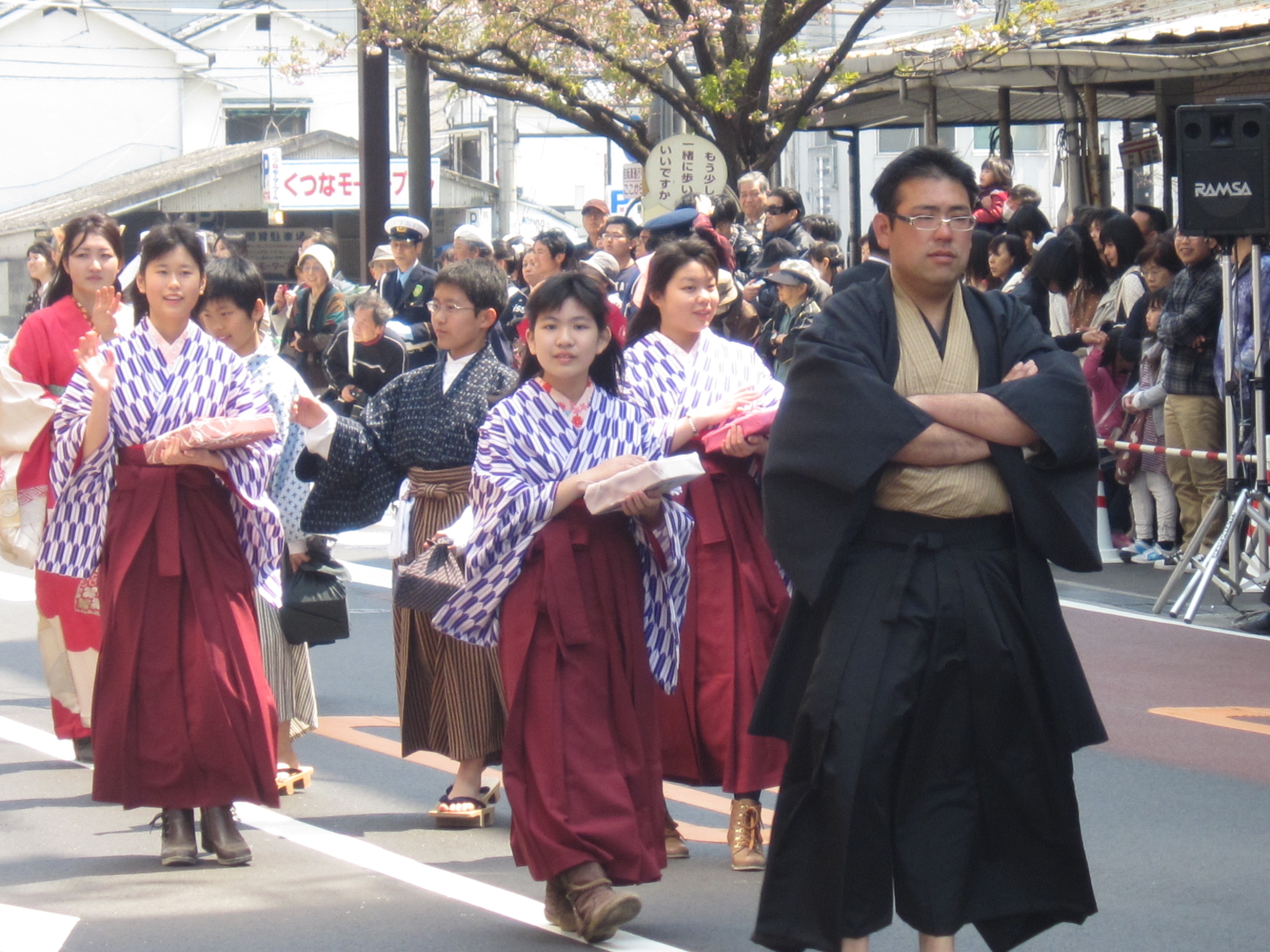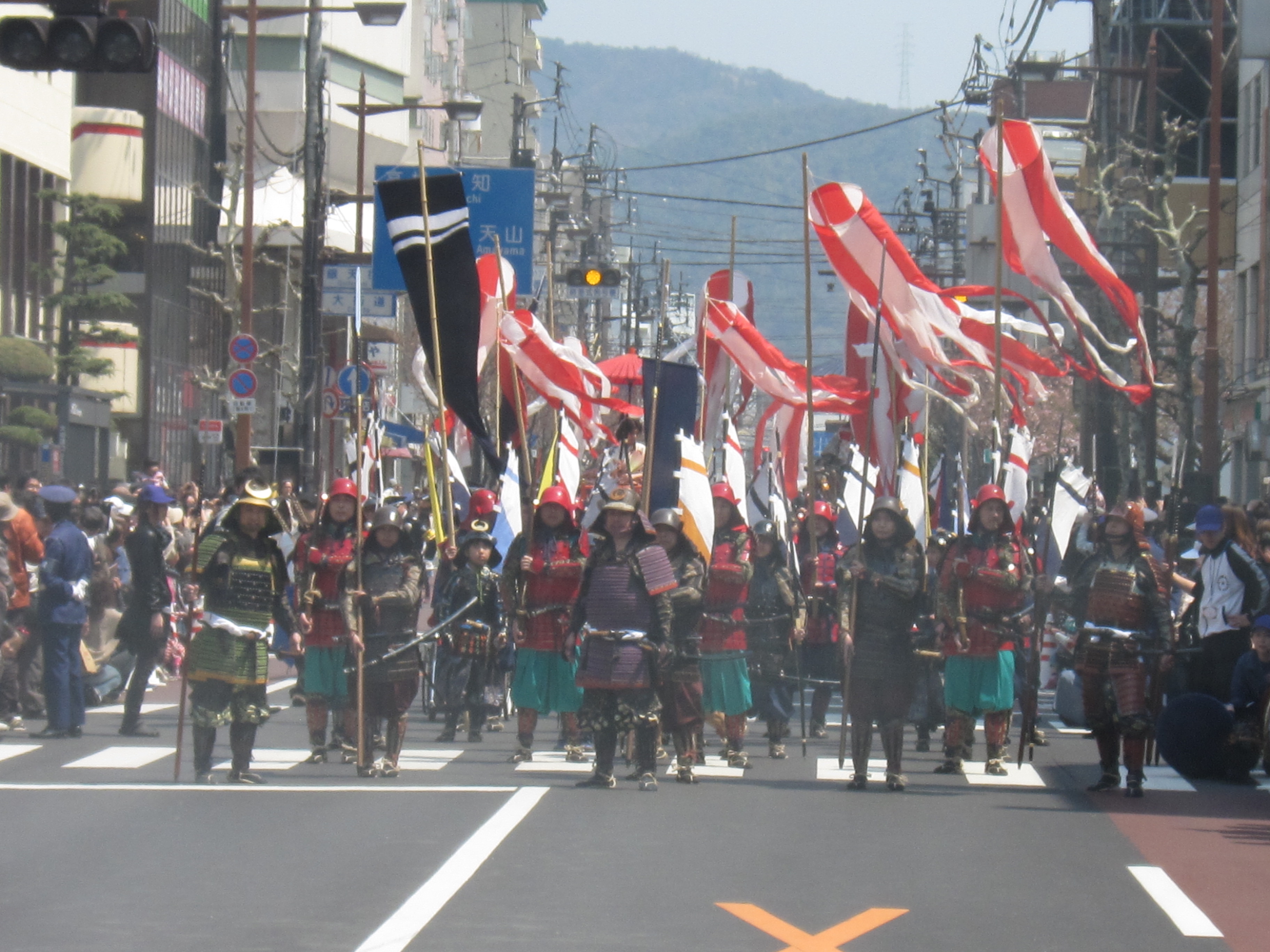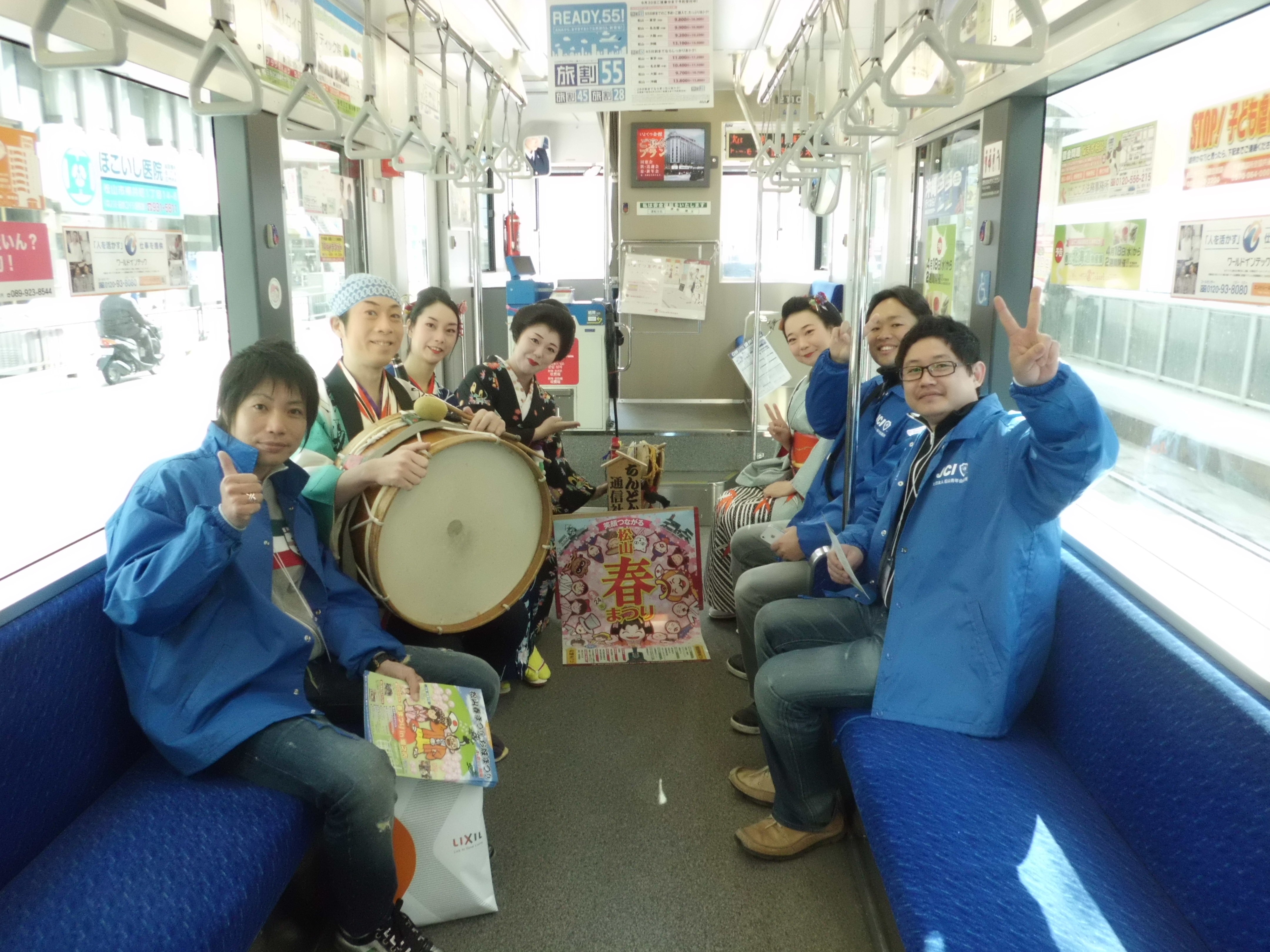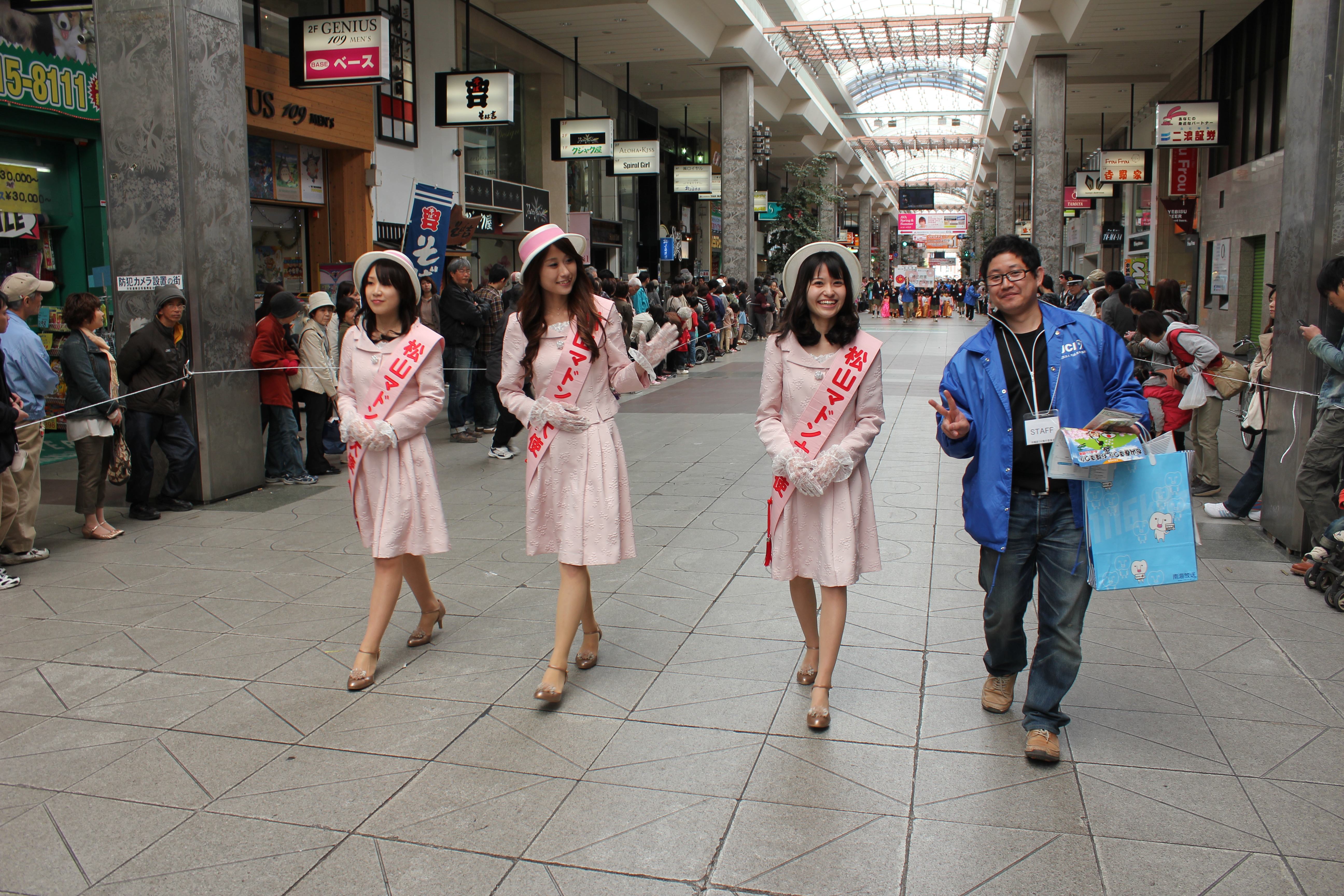 桜が満開となった4月8日(日)に松山春まつりのフィナーレを飾るお城まつりが開催されました。大名・武者行列は1967年から始まった恒例行事で松山市内の商店街を中心に武将やお姫様に扮した一般公募の市民約200人が帽子理事長の掛け声で出発しロープーウェイ街から千舟町通りまでの約1.2キロを勇壮に練り歩きました。昨年は東日本大震災による自粛のため準備半ばで中止となり今年は2年ぶりの開催となりました。お姫様にはタレントの南明奈さんをお迎えし市民もお姫様を一目見ようと沿道が見物の方で溢れました。当日の朝の全体ミーティングでは、春まつり担当の歴史文化委員会の梶木委員長の挨拶の中でインフルエンザに感染してしまっていることをメンバーに伝えるとメンバー一同騒然となりました。しかしメンバー全員で協力しなければ成功できないと訴え続け最も準備に力を注いだ梶木委員長の思いが既にメンバーに伝播しておりメンバーそれぞれが責任を持って担いを果たし続け、梶木委員長もマスクをして最後まで頑張り、無事にお城まつりを終えることができました。当日は11時より堀之内にて松山JC60周年記念事業の一つである愛媛たから市 ダンス大会も開催されました。この事業の背景にはこの春から文部科学省の学習指導要綱改定によりダンスが中学校で必須授業になり高校でも選択授業となることがあります。ダンスを通じてコミュニケーション力や表現力を培い努力することで得る事の出来る喜びや楽しさを感じる事が将来の子供たちの力になると考えました。そしてまた松山のたからである子供たちを、松山JCが市民の皆様と一緒になって育んで行く事で青少年の健全な育成に繋がると考え開催を決定いたしました。創立60周年実行委員会のメンバーが中心となって運営し多くの市民の方に喜んでいただくことができ記念事業に相応しいものとなりました。堀之内公園ではフリーマーケットやご当地グルメフェスタ他数多くのステージイベントも行われテレビの生中継にも帽子理事長が出演しPRする場面もありました。復興支援の一環で東北の陸前高田市の物産ブースも我々松山JCで運営いたしましたがご来場の市民の方に多くのご協力を頂けたことをこの場をお借りしてお礼申し上げます。我々メンバーにとっては本当に忙しい一日となりましたがお城まつりにご参加いただいた多くの市民の方の笑顔にメンバーの疲れも十分に癒していただきました。主催のお城まつり実行委員会、そして共催の松山市と松山JCメンバーの皆様本当にお疲れ様でした。