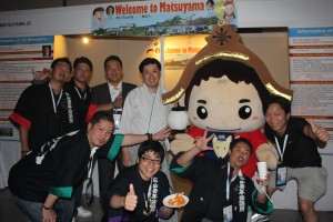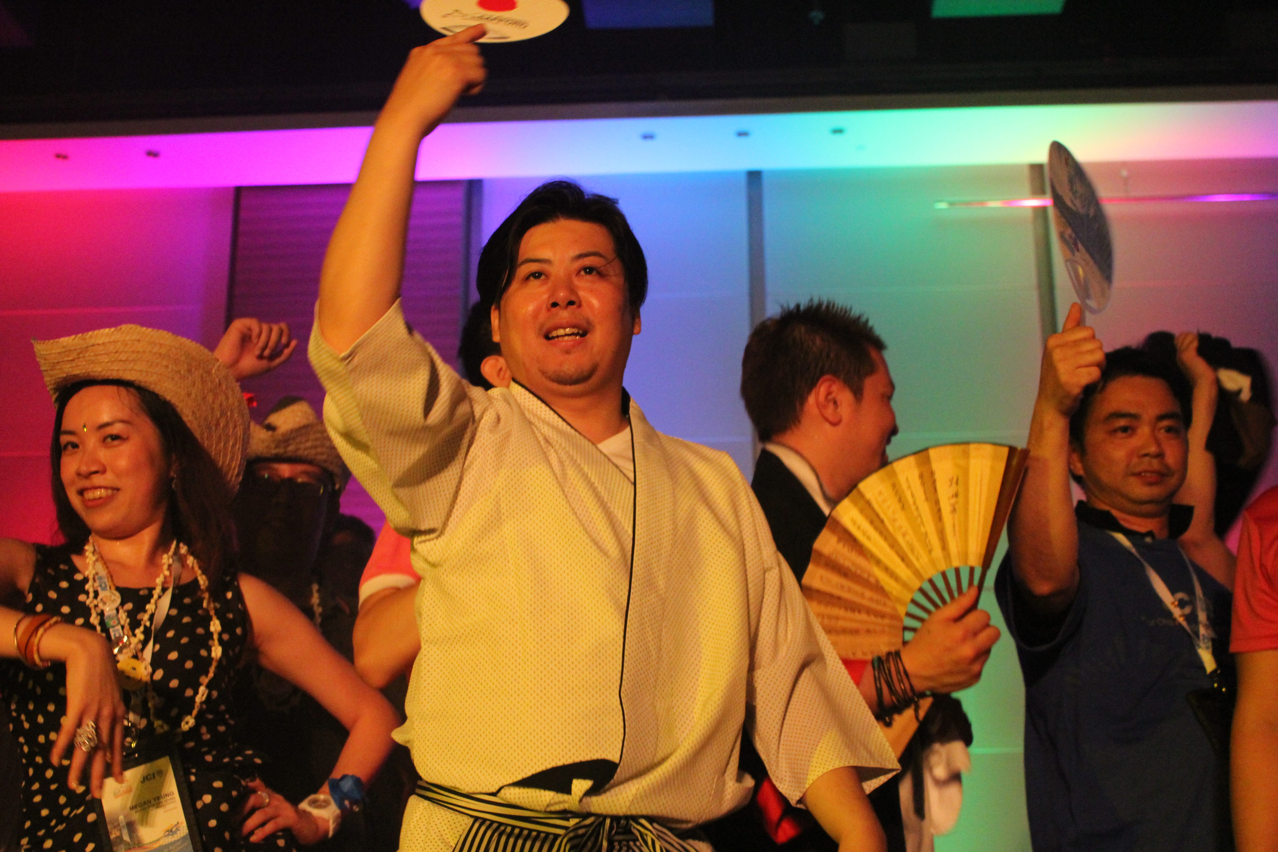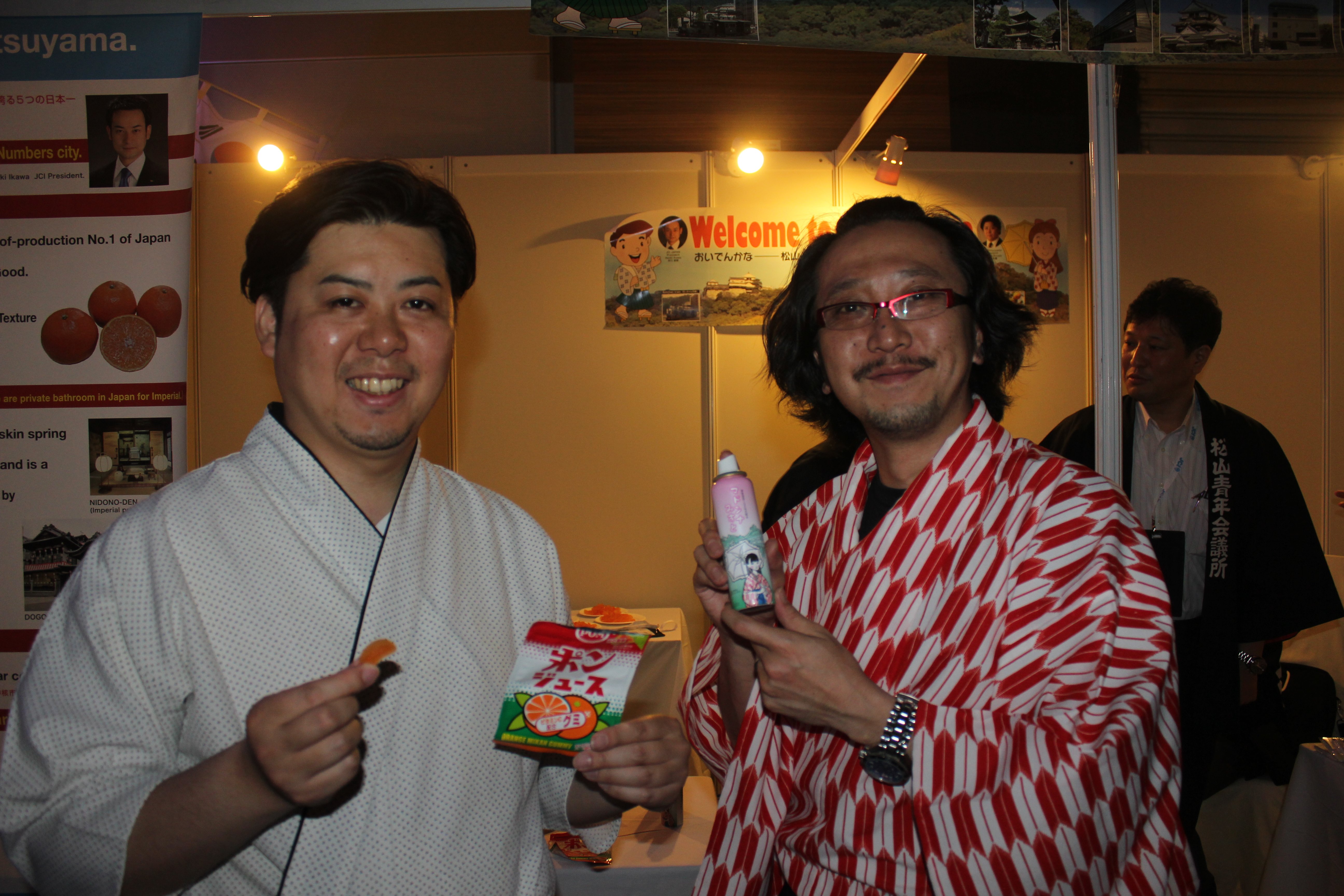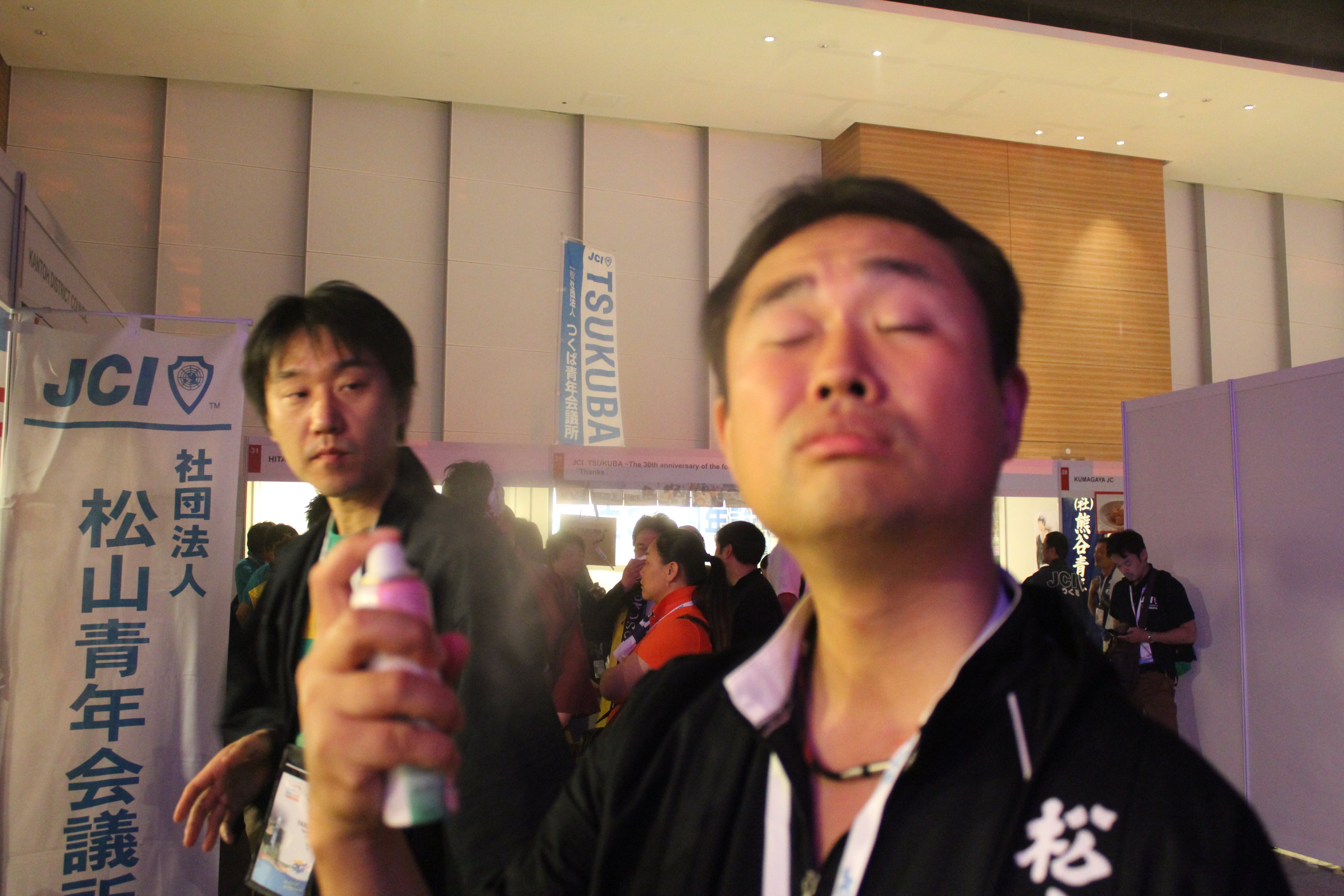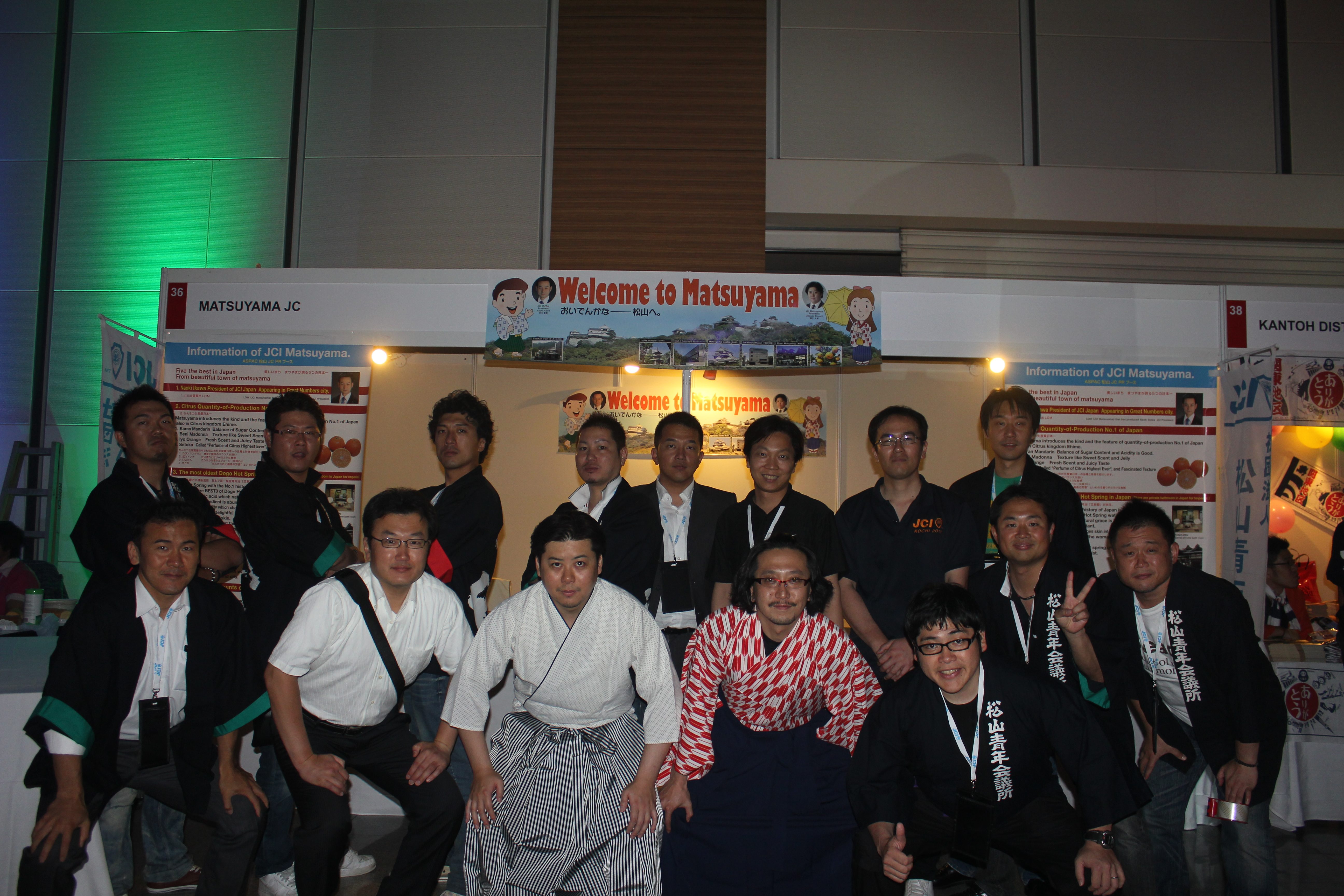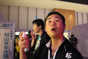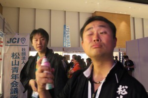 日本を含め約20カ国の青年会議所メンバーが集うASPAC香港大会は6月7日から10日まで開催され会議、セミナー、レセプション、晩餐会、交流イベントが多数実施されました。9日(土)にはL`HOTEL の5階Exhibition HallにてASPACジャパンナイトが開催され松山JCからも18名が参加しました。会場には松山JC も含んだ60ものブースが出展されました。松山JCブースでは来場者に道後温泉100%使用!添加物ゼロ!の化粧水『マドンナみすと』を体験していただき松山JCの創立60周年ポケットティッシュとポンジュースグミと伯方の塩を差し上げました。マドンナみすとの爽快感に思わず声をあげられる方も多数いらっしゃいましたが笑顔で大変喜んでいただき松山をPRすることができました。会場内のDJブースまであるステージではダンス大会も行われ松山JCからも帽子理事長を筆頭に松山のハッピを着た有志のダンサー達が熱演してくれました。他LOMや海外の同士の方々とも一緒に踊って懇親を深めることができ日頃の疲れも吹き飛ぶくらい楽しい一時でした。翌日の会議では2014年度第64回JCI ASPAC山形大会の招致が決定しました。