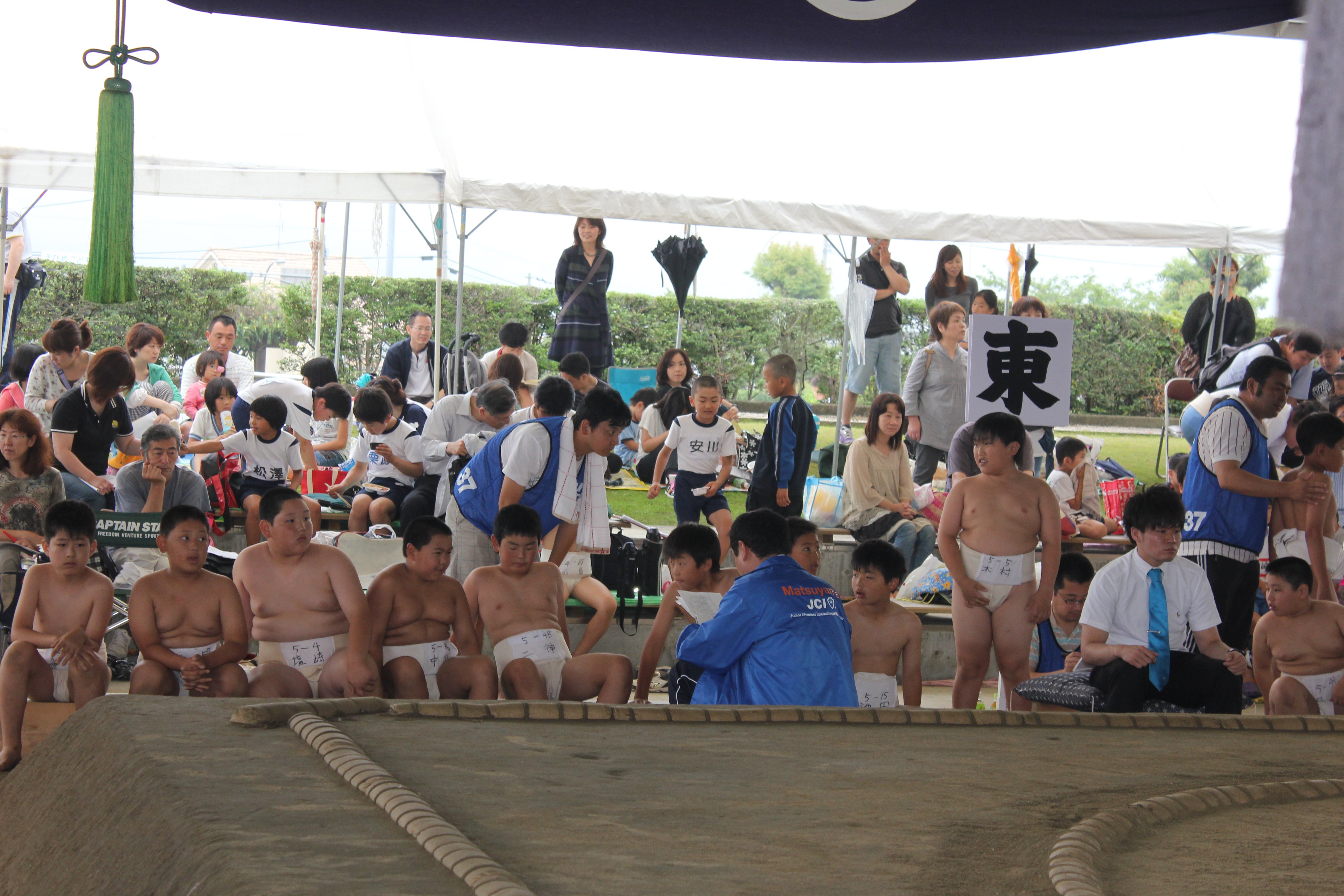 「わんぱく相撲」は1976年社団法人東京青年会議所が実施した「東京・23区の魅力度―第2回都民生活意識調査報告書」に基づき、遊び場の少ない東京の子ども達にスポーツの機会をより多く与え、心身の鍛練と健康の増進を目的として、身近に行えるスポーツである『相撲』をとりあげ、1977年に社団法人東京青年会議所が、23区全域に運動として展開したことに始まります。そして、国技館が蔵前から両国に移転する際に、「わんぱく相撲全国大会」を開催する方向付けがなされ、1985年8月4日に第9回「わんぱく相撲東京場所」と併催で、「わんぱく相撲全国大会―新国技館落成記念大会」が開催されました。2012年度も、第28回「わんぱく相撲全国大会」が開催されることとなり、当会議所においても全国大会の地方予選として第25回「わんぱく相撲まつやま場所」を開催しました。