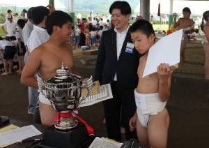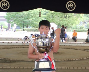 今年度、6年生の部の優勝者の矢野剛成君(宮前小学校)は4年生・5年生と続けてわんぱく相撲に参加しましたが優勝することができませんでした。そして参加資格が最終となる今年、ついに優勝することができたのです。とても嬉しいと最高の笑顔と勇気を我々に見せてくれました。