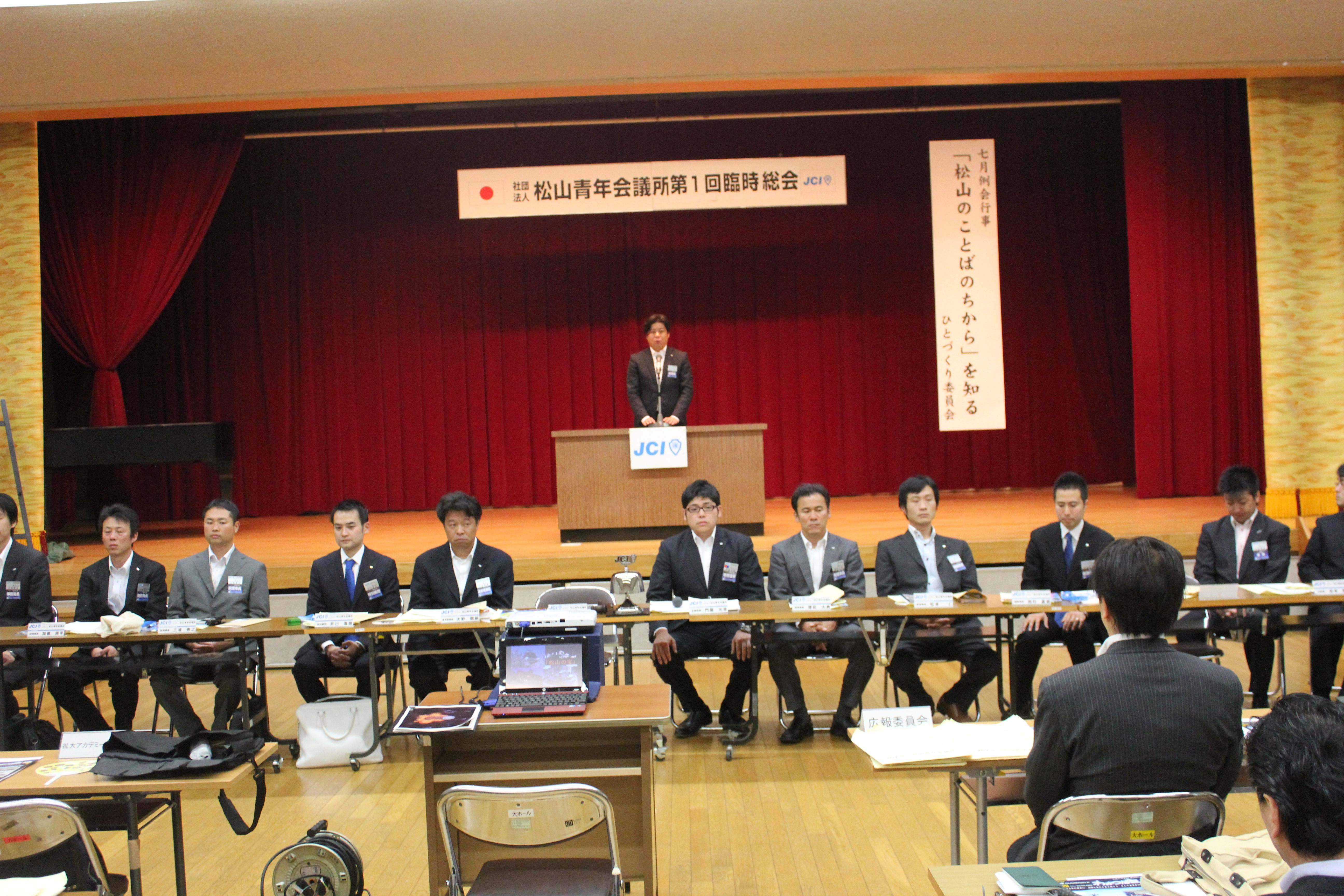 7月17日(火)に松山市青少年センターにて第1回臨時総会が開催されました。社団法人松山青年会議所 理事長選任(案)承認の件が全会一致で可決承認され、次年度理事長予定者に増田大典君が決定しました。