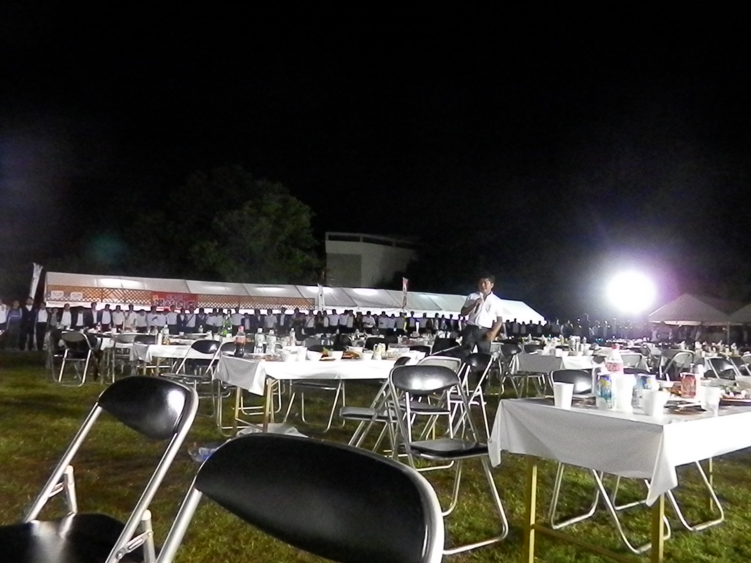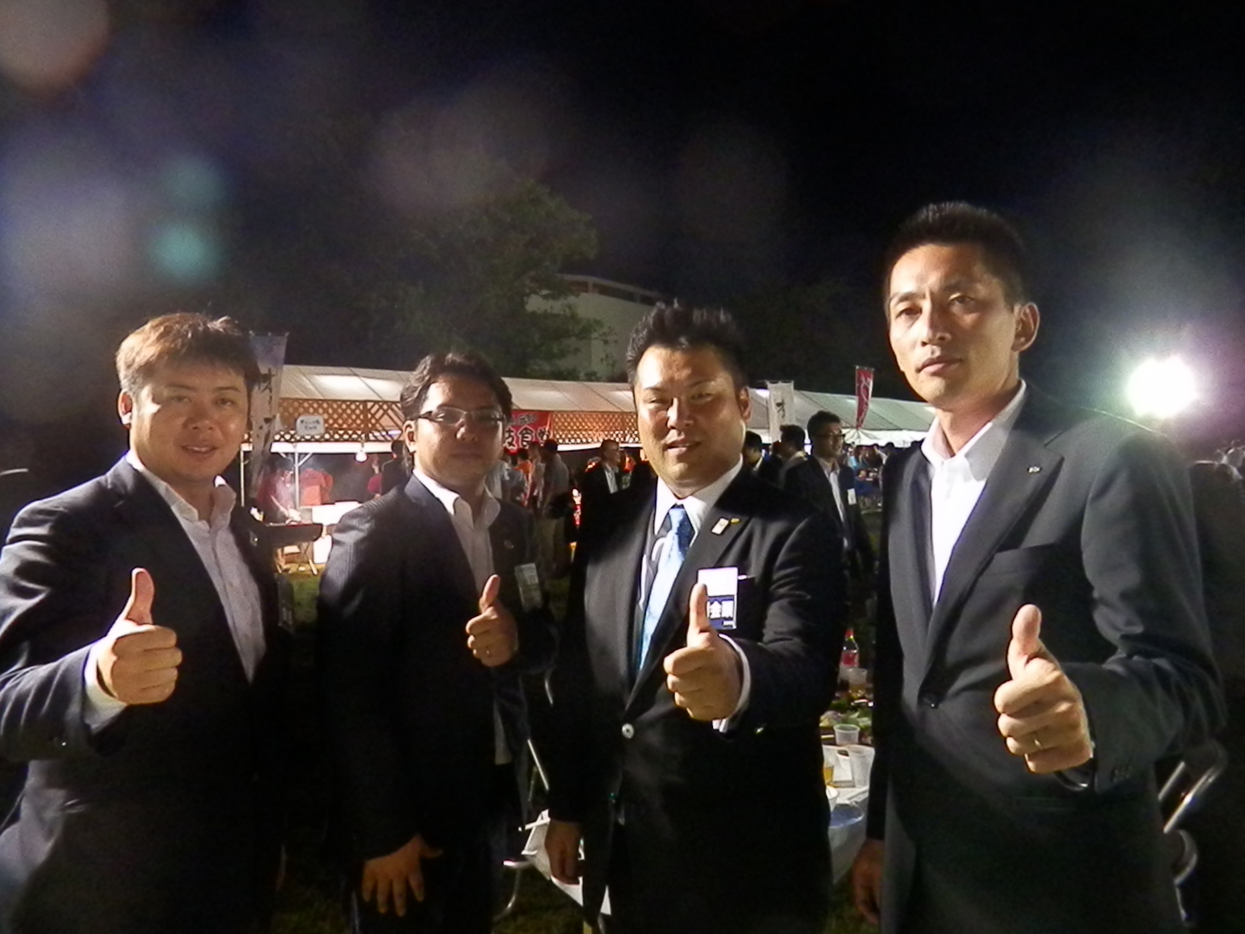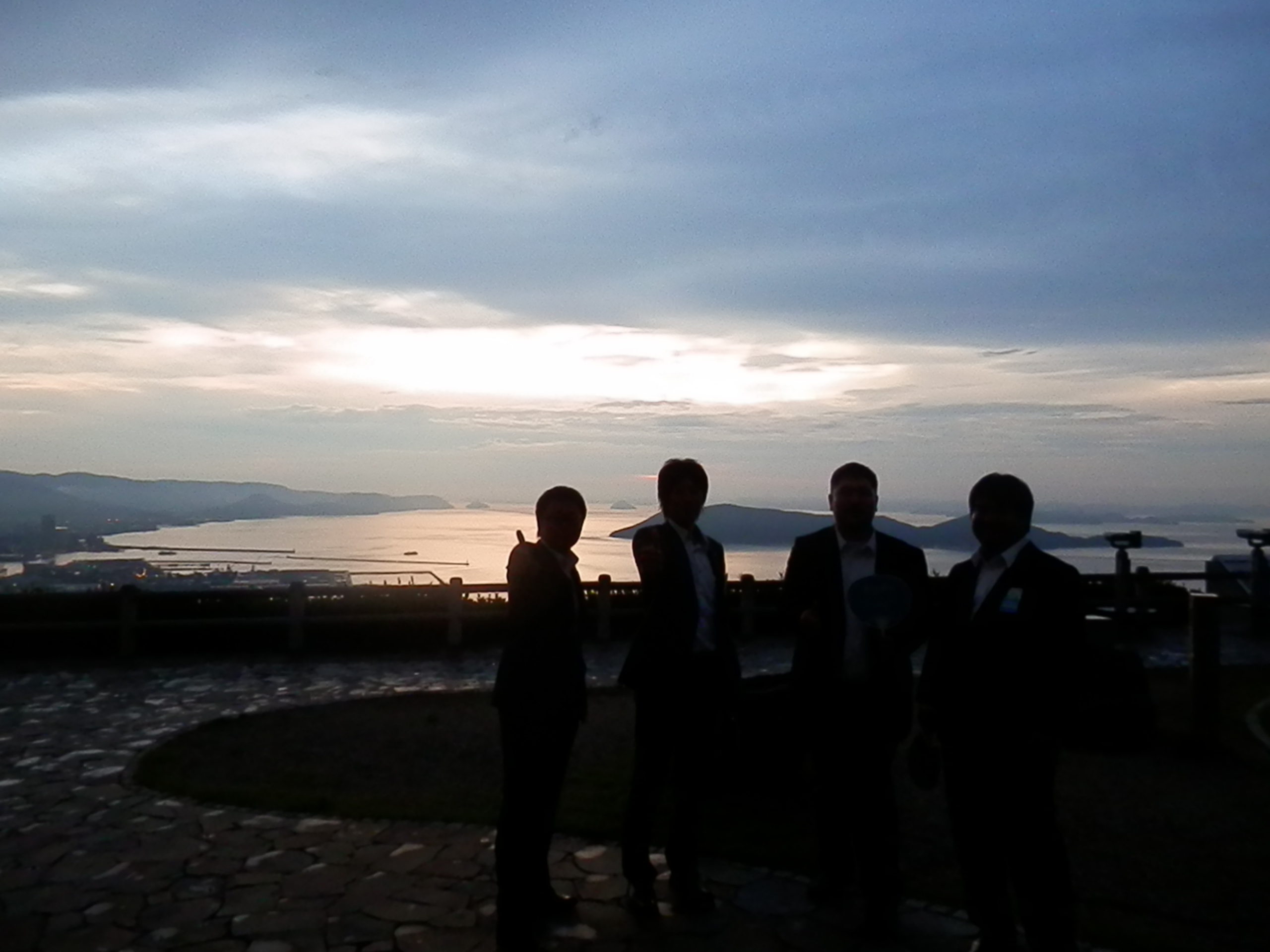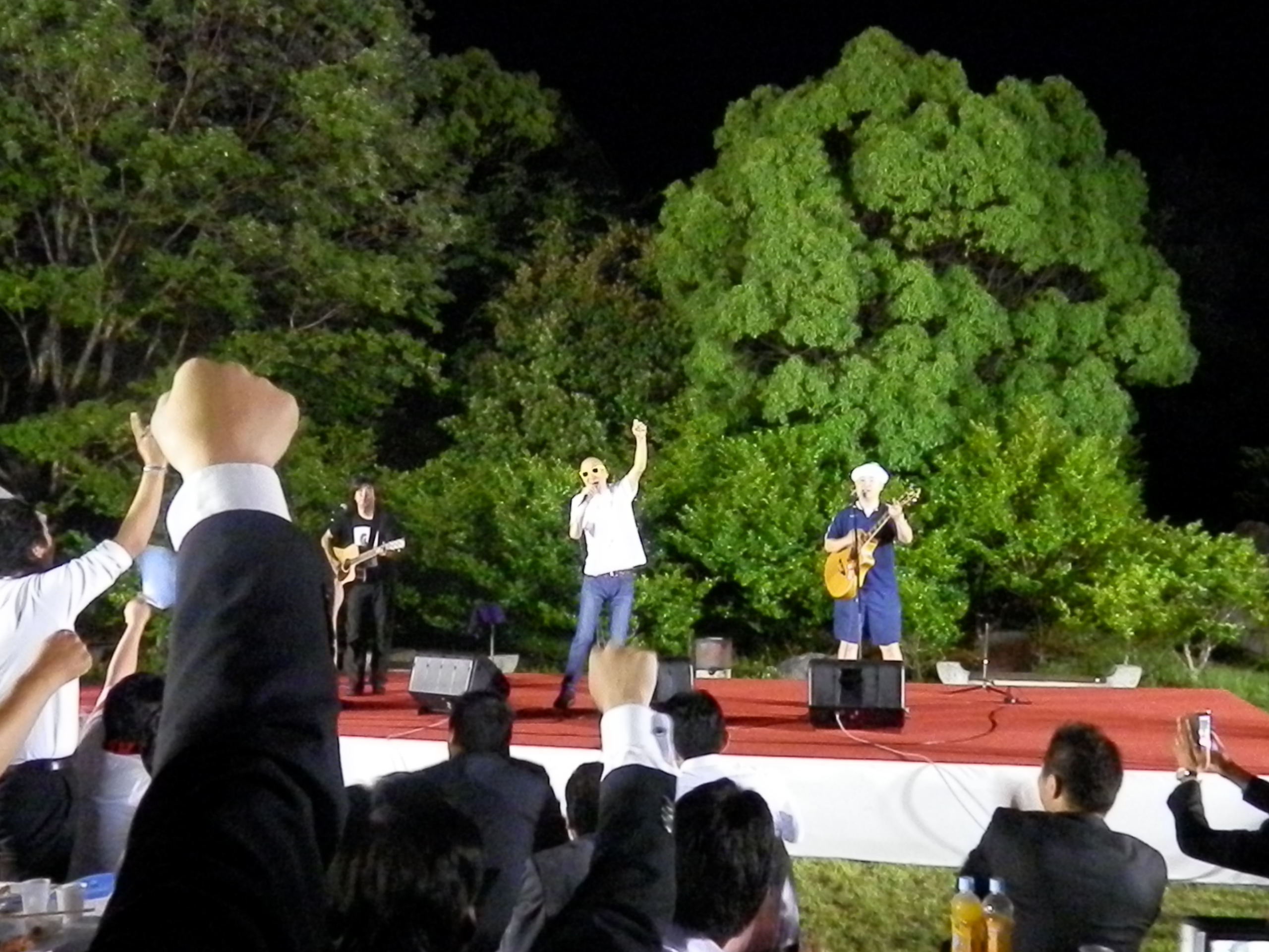 小雨が降る中、懇親会の場所屋島山頂県木園・れいがん茶屋横に移動。到着時には雨も止み、暑さも和らいだ中で山頂から見える素晴らしい夜景をバックに盛大な懇親会が開催をされました。サプライズゲストとして、サンプラザ中野くん、パッパラー河合さんによるライブも開催され、「RUNNER」等熱唱して頂き、中締めでは木村実行委員長のお馴染みの「なる~」の合言葉で大盛況の内懇親会は終了致しました。
