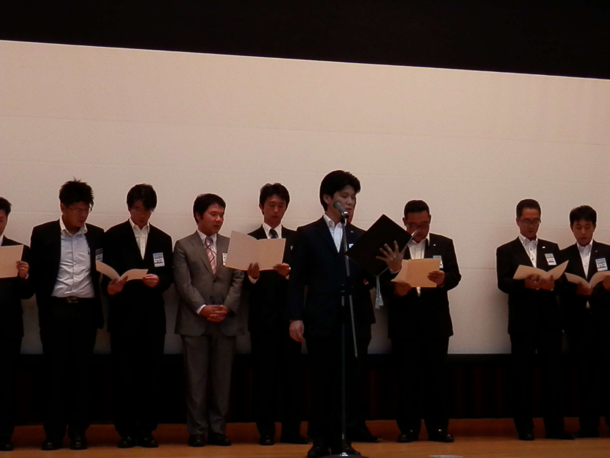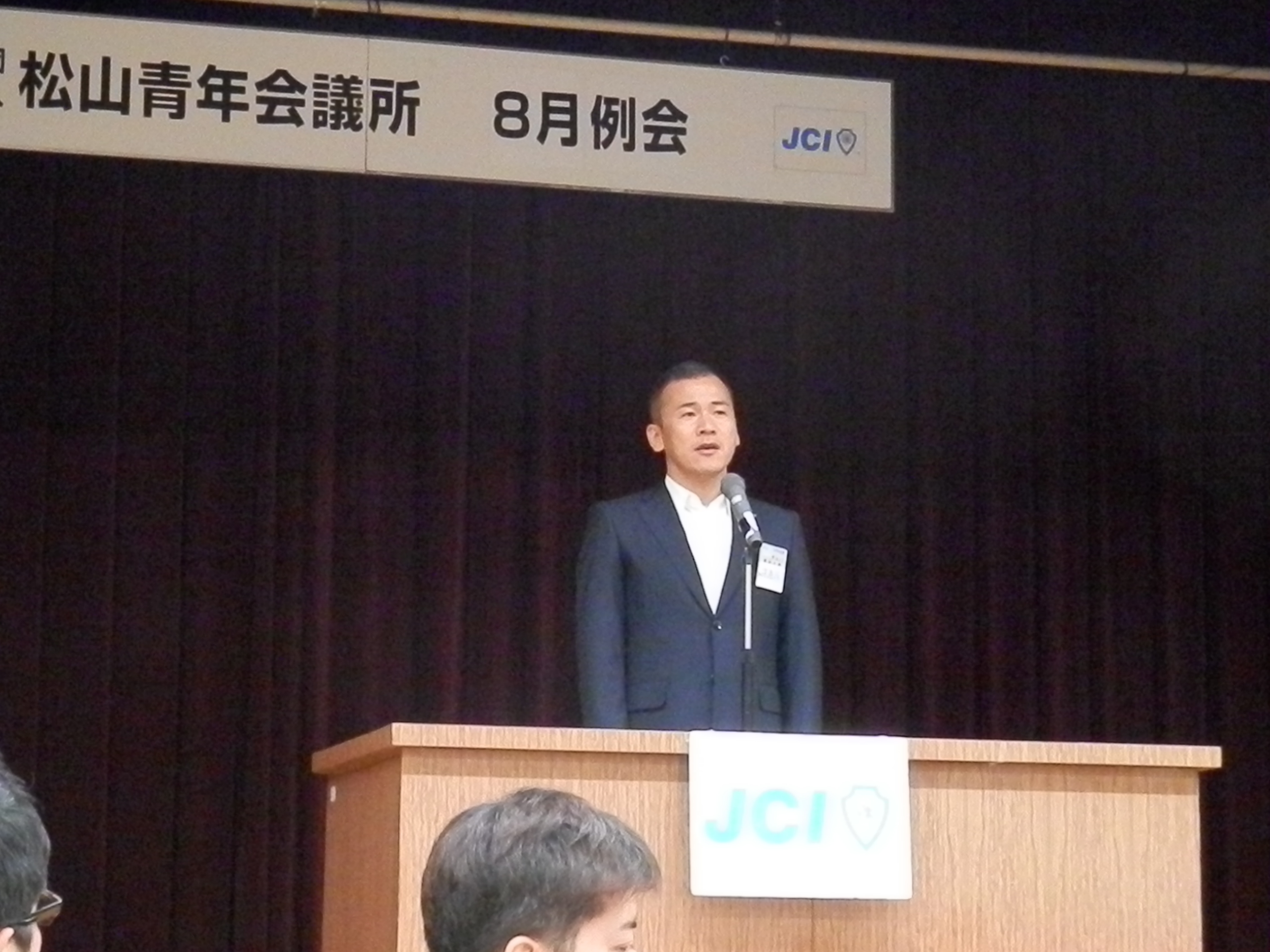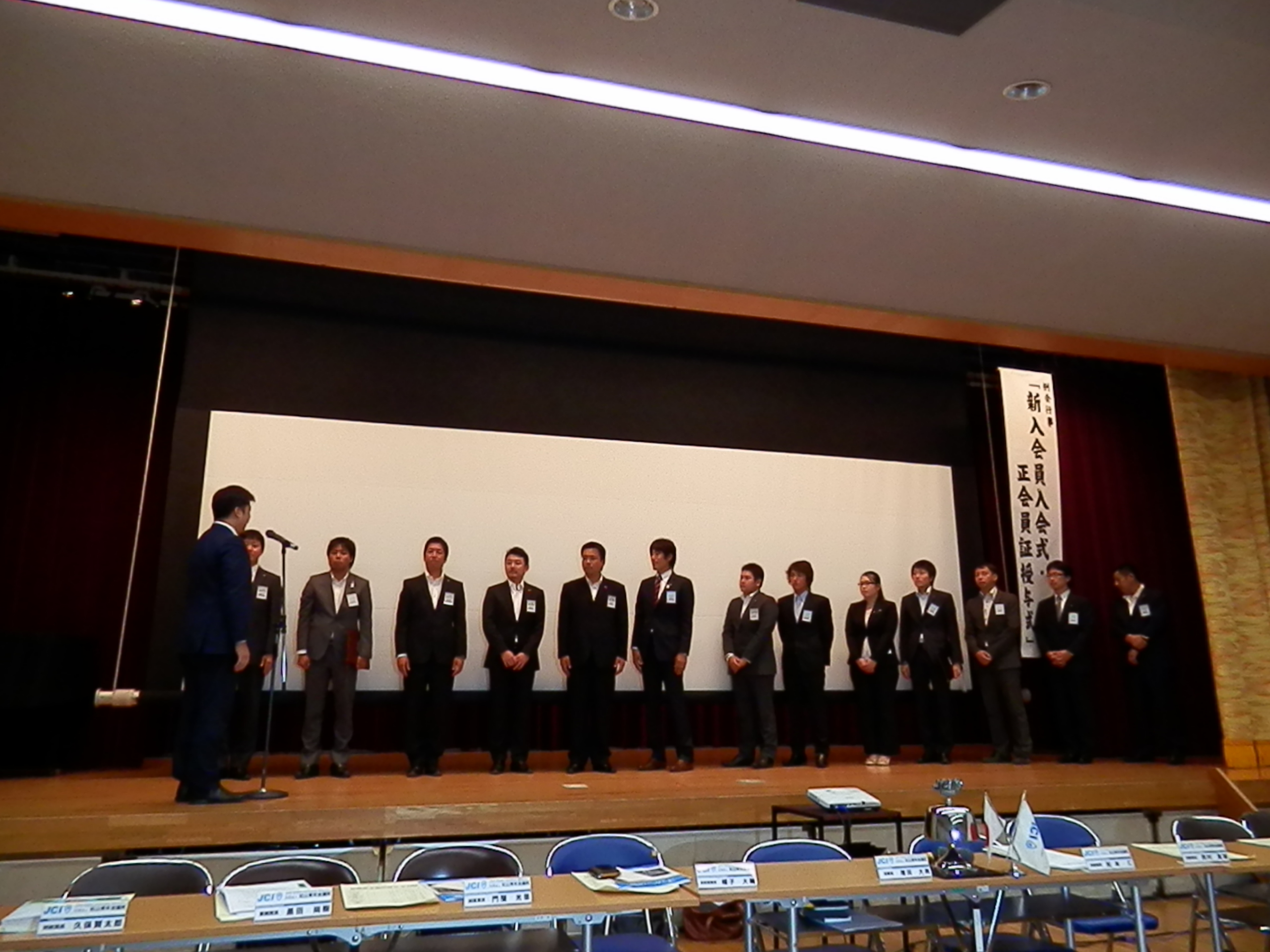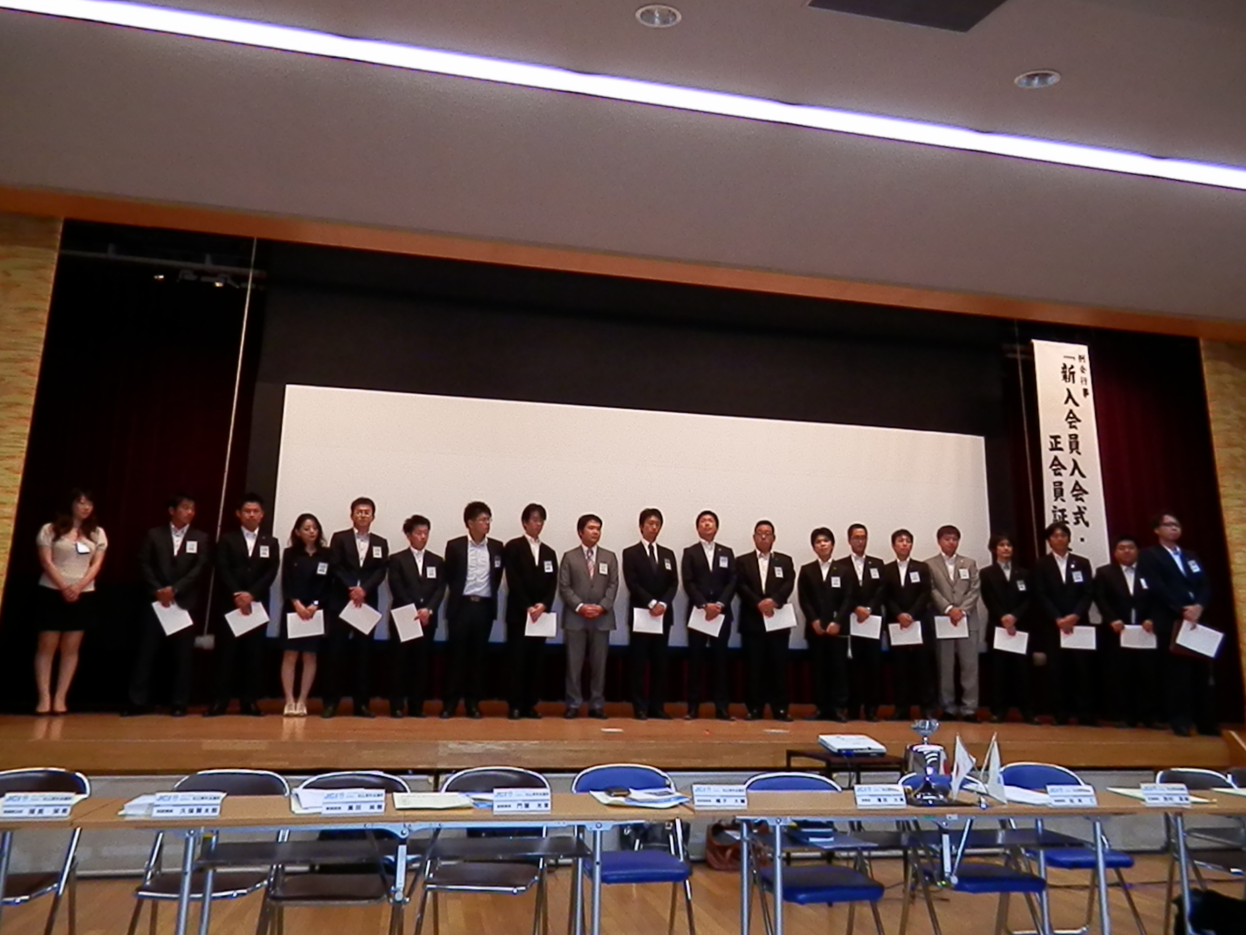 8月20日(火)、社団法人松山青年会議所8月例会「新入会員入会式・正会員証授与式」が松山市青少年センターで行われました。先に行われた入会式では、4月と7月に入会した準会員26名がビデオ紹介後に登壇。増田理事長から歓迎の言葉をかけられ、渡部真也君が代表して準会員証とJCバッジを受け取りました。その後、厳粛な雰囲気の中、JCIクリード、JCIミッション・ビジョン、JC宣言文朗読並びに綱領を全員で唱和。仙波隆君から「15年前からJCの存在は知っていたが、もっと早く入会をしておけば良かったと今は思う。これから仲間とともに修練・奉仕・友情の三信条のもと楽しく活動していきたい」と代表挨拶がありました。降壇時には、各所属委員会の委員長が固い握手とともに新しい仲間を迎えました。引き続いて昨年入会し、1年間のJC活動を経て、晴れて正会員となった17名の正会員証授与式。こちらも一人ひとりビデオ紹介のあと、登壇し、帽子直前理事長からお祝いの言葉がかけられました。正会員代表挨拶では、新田展史君が「1年間様々な活動を通して多くの素晴らしい出会いと学びを得ることができた。これからも松山の魅力をしっかりと発信をし、率先して行動します。」と力強く語り、来年の全国大会に向けての気概と覚悟も感じられる内容でした。増田理事長の歓迎の言葉にありましたように、今回の例会は必ず、新入会員・正会員の皆さんにとって「松山青年会議所の現風景」(思い出)になったことと思います。岡田亮良委員長をはじめとする拡大向上委員会の皆さん、例会設えお疲れ様でした。総勢133名、力をあわせ松山JCを盛りあげていきましょう! 広報委員会 伊藤賢司