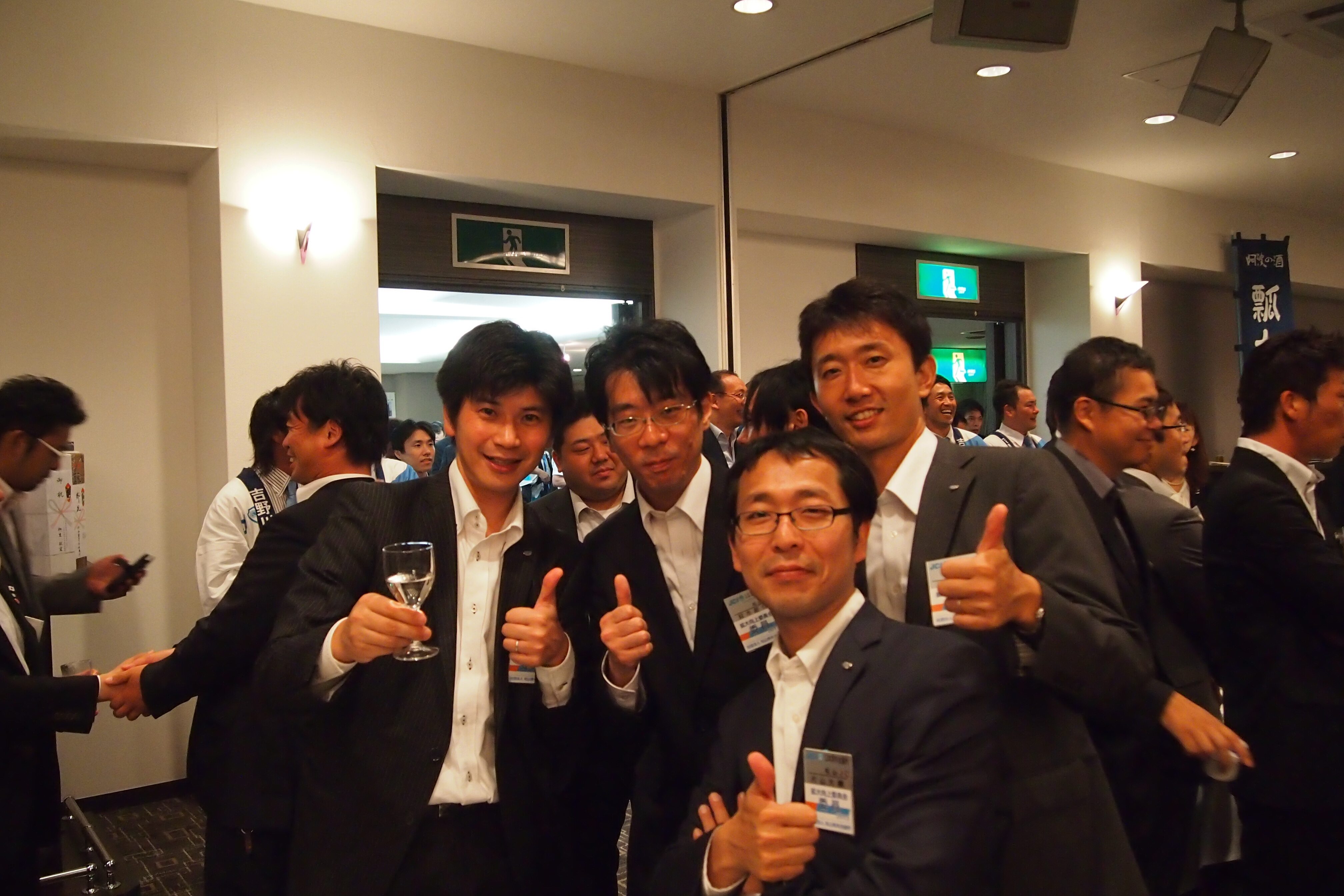 「一歩前へ ~40年の感謝を胸に新たなる挑戦~」。9月14日(土)、徳島県吉野川市鴨島公民館において「一般社団法人 吉野川青年会議所 創立40周年記念式典」が開催され、松山JCも増田大典理事長をはじめとする多くのメンバーで参加致しました。式典冒頭、吉野川の自然あふれる数々の風景が映像にて流され、吉野川で暮らしたくなるような和やかな雰囲気で始まった後、筒井克彦理事長より『次の50周年に向けて、これからも活動を通して地域の発展を担っていくと共にリーダーの資質も磨いていく』と強い決意、挨拶がありました。その後、『郷土愛にあふれ地域特性を活かした活動を数多く行い、人づくり、まちづくりに貢献をしている』と多くの来賓の方々からの祝辞もあり、最後に鈴木和也副会頭は『功績を称えると共に、全国大会奈良大会から得たものを吉野川の発展に結び付けてほしい』と述べられました。以後粛々と式典は進行し、最後に「40周年宣言文」が力強く発表され式典は幕を閉じました。場所を移動し、セントラルホテル鴨島にて祝賀会が行われ、徳島名物阿波おどりを観賞。徳島地産料理も堪能し、吉野川JCメンバー皆様の心のこもったおもてなしを受けながら盛況の内に幕を閉じました。広報委員会 幹事 新田展史
