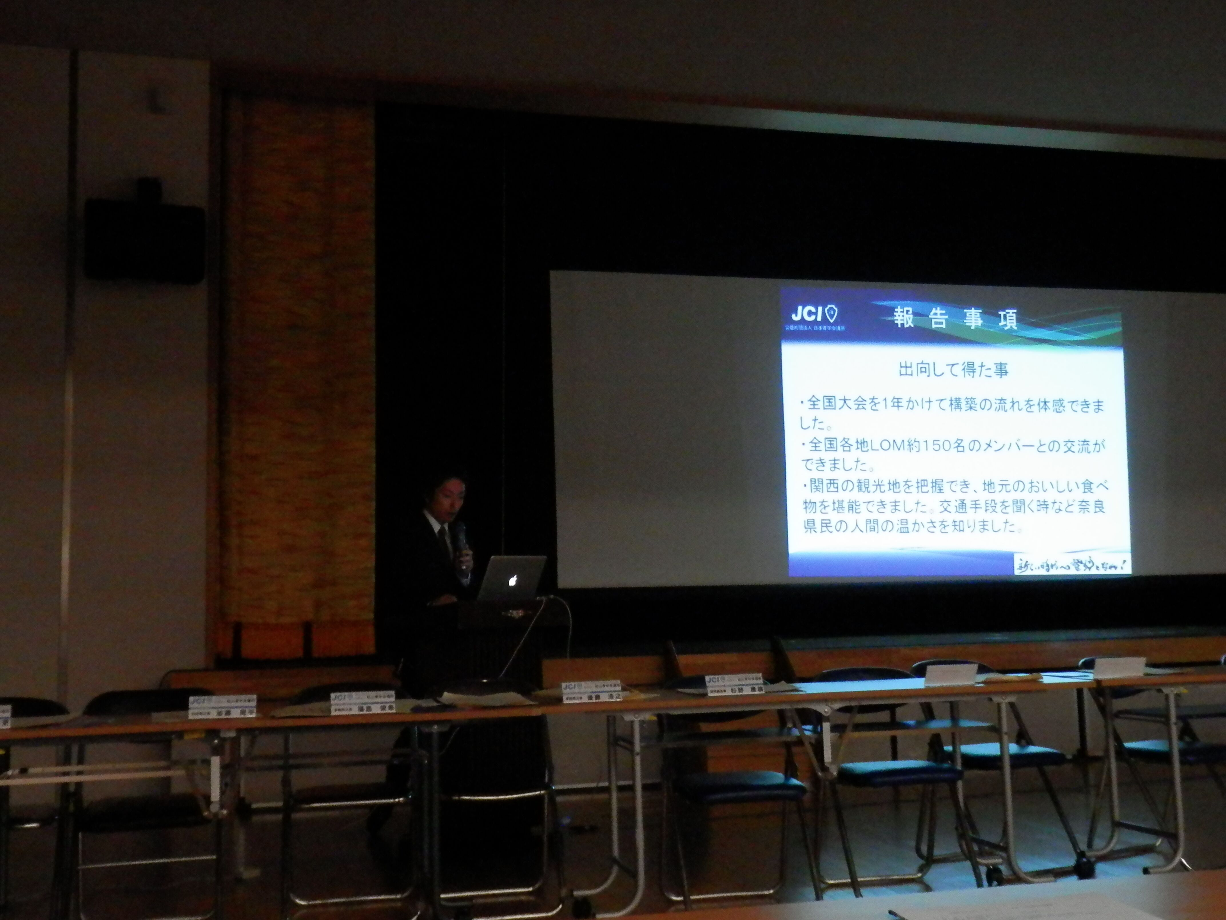 松山大会の開催まで1年をきり、大会の成功に向けてメンバー一丸となり信頼する仲間と共に前に進まなければなりません。そして私達一人ひとりが、主管LOMとしての自覚をしっかりと持ち、メンバー間の信頼関係を構築すると共に全国大会への意識昂揚・知識共有につなげるべく11月例会「松山大会成功に向けて」を全国大会準備会議の担当で開催しました。第1部として奈良大会に参加がかなわなかったメンバーに対し奈良大会の映像を上映し、大会概要を知ってもらい、全国大会運営会議に出向したメンバーより奈良大会に携わる事が出来た経験や学んだことの発表が行われました。第2部は、私達がこの地の魅力を発信するために、知っておかなければならない松山の知識の再確認をしました。第3部として、松山大会の概要を説明した後、全国大会実行委員会の各委員長より大会の成功に向けての想いをメンバーに発表いたしました。各委員長の大会にかける思いが、緊張感あふれるなか発表され、気概と覚悟がメンバー全員に伝わりました。大会開催まで残り限られた時間、何ができるのか?皆様とともに『全国大会松山大会』を創り上げていきましょう。岡田副実行委員長、メンバーの皆様。大会成功に向けて共に 上を向いて歩こう♪ 全国大会準備会議 副議長 西野完。