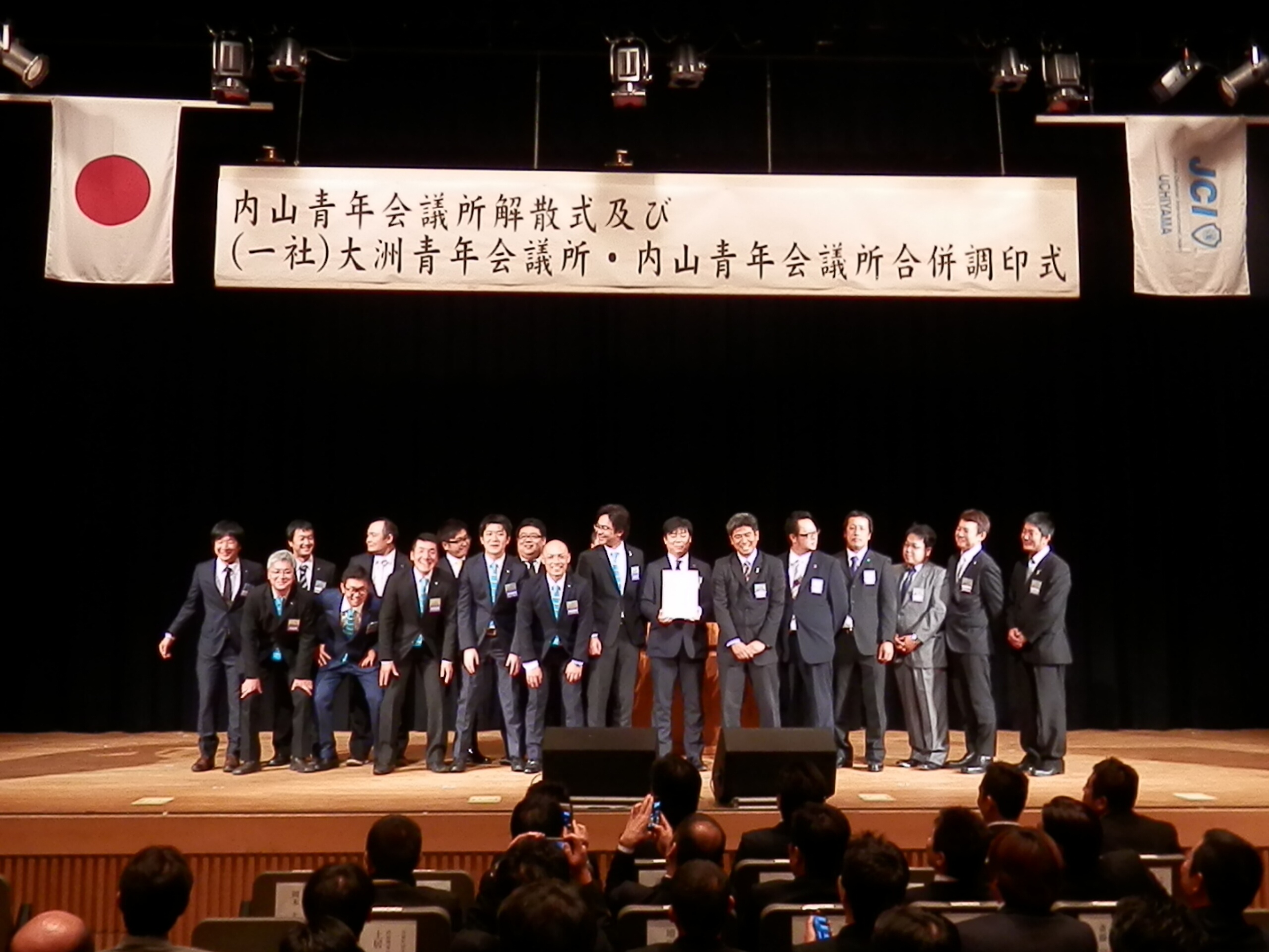 内山青年会議所解散式及び大洲青年会議所・内山青年会議所合併調印式