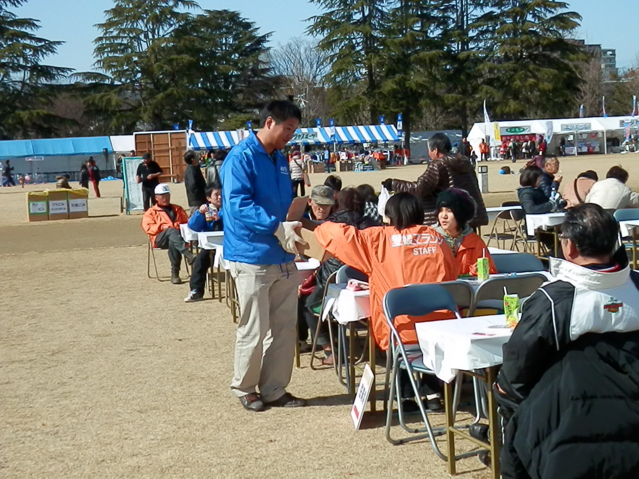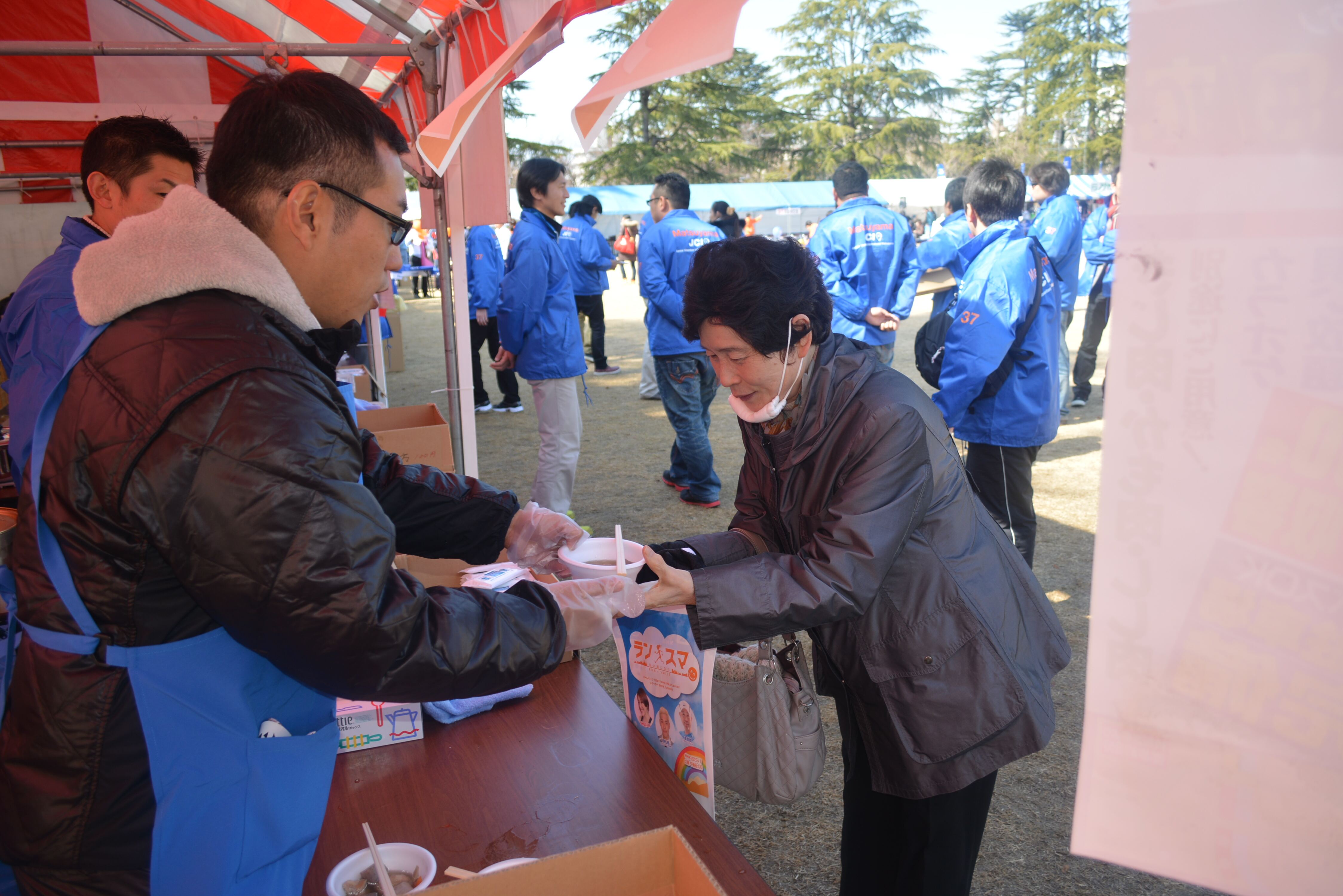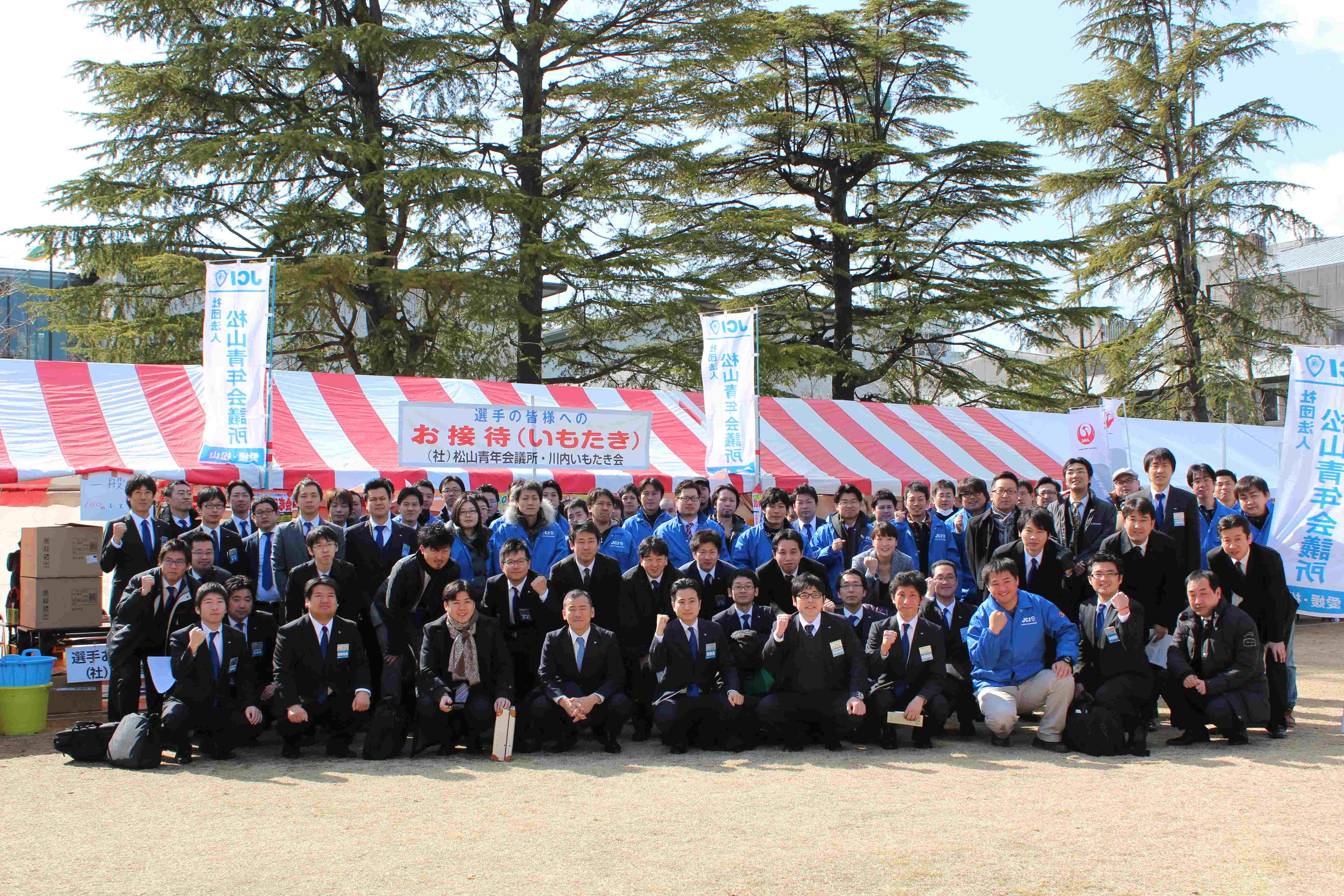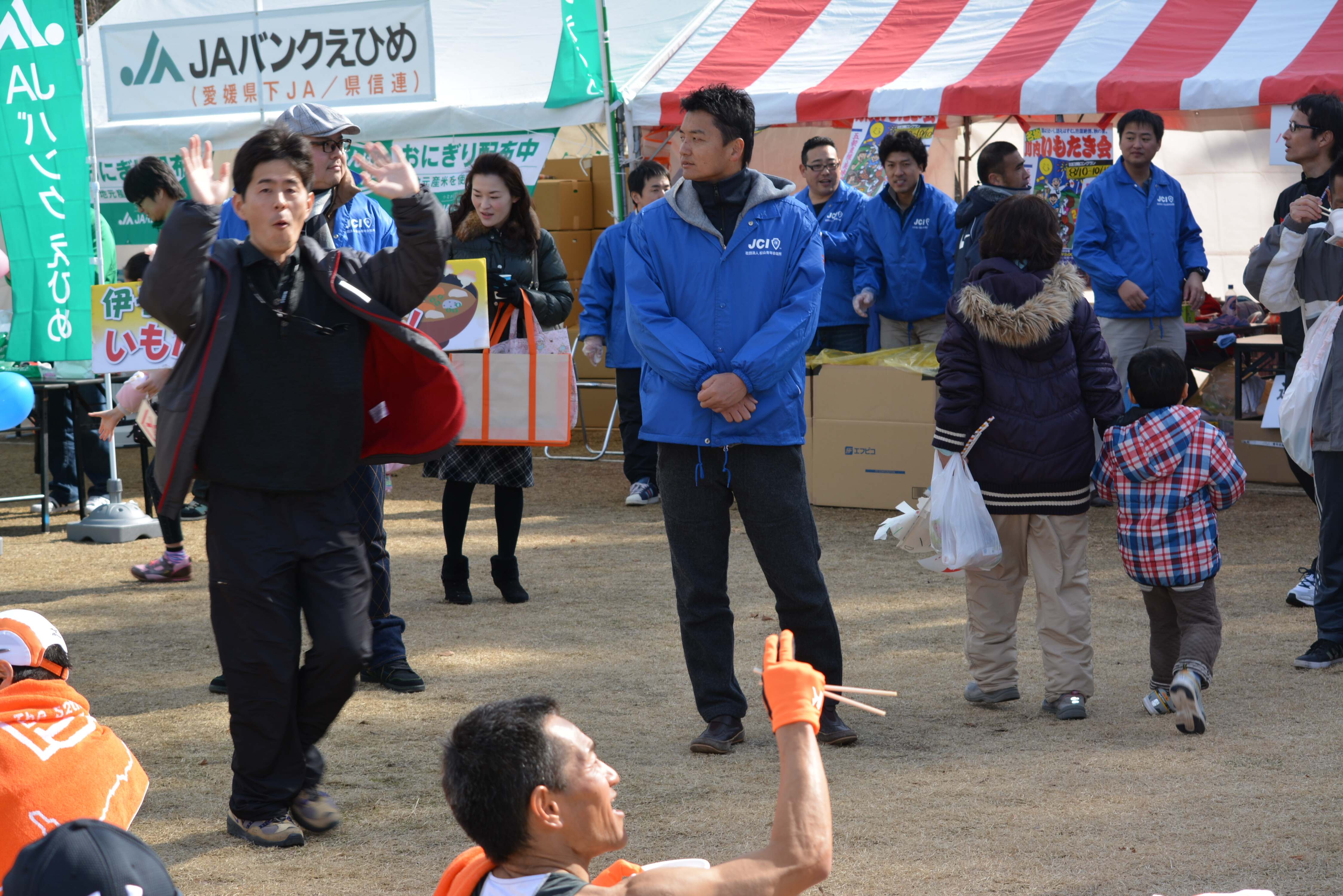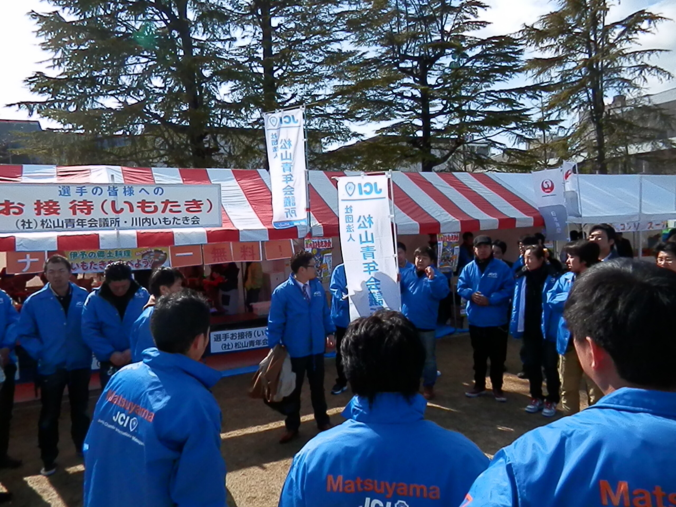 第52回愛媛マラソンが2月9日に開催されました。私たち松山青年会議所は今回もおもてなしブースを出展。川内いもたき会様と一緒に9,000杯のいもたきを選手をはじめ、多くの来場者やボランティアスタッフの皆様に配膳することができました。 トップランナーから最終ランナーがゴールするまで、全てのランナーのためにいもたきをご用意することができ、多くの方から感謝の気持ちをいただきました。私たち松山青年会議所としても、参加者の皆様に四国の誇る文化「おせったい」の気持ちを伝えることができたと思います。日曜休日にも関わらず、参加いただいたメンバーには心より感謝御礼申し上げます。来年の第53回愛媛マラソンでも是非、42.195Kmを精一杯走るランナーと共に、我々も明るい豊かな社会というゴールを目指して、「おせったい」の気持ちを胸に支援し続けましょう。ひとづくり委員会委員長 後藤浩之