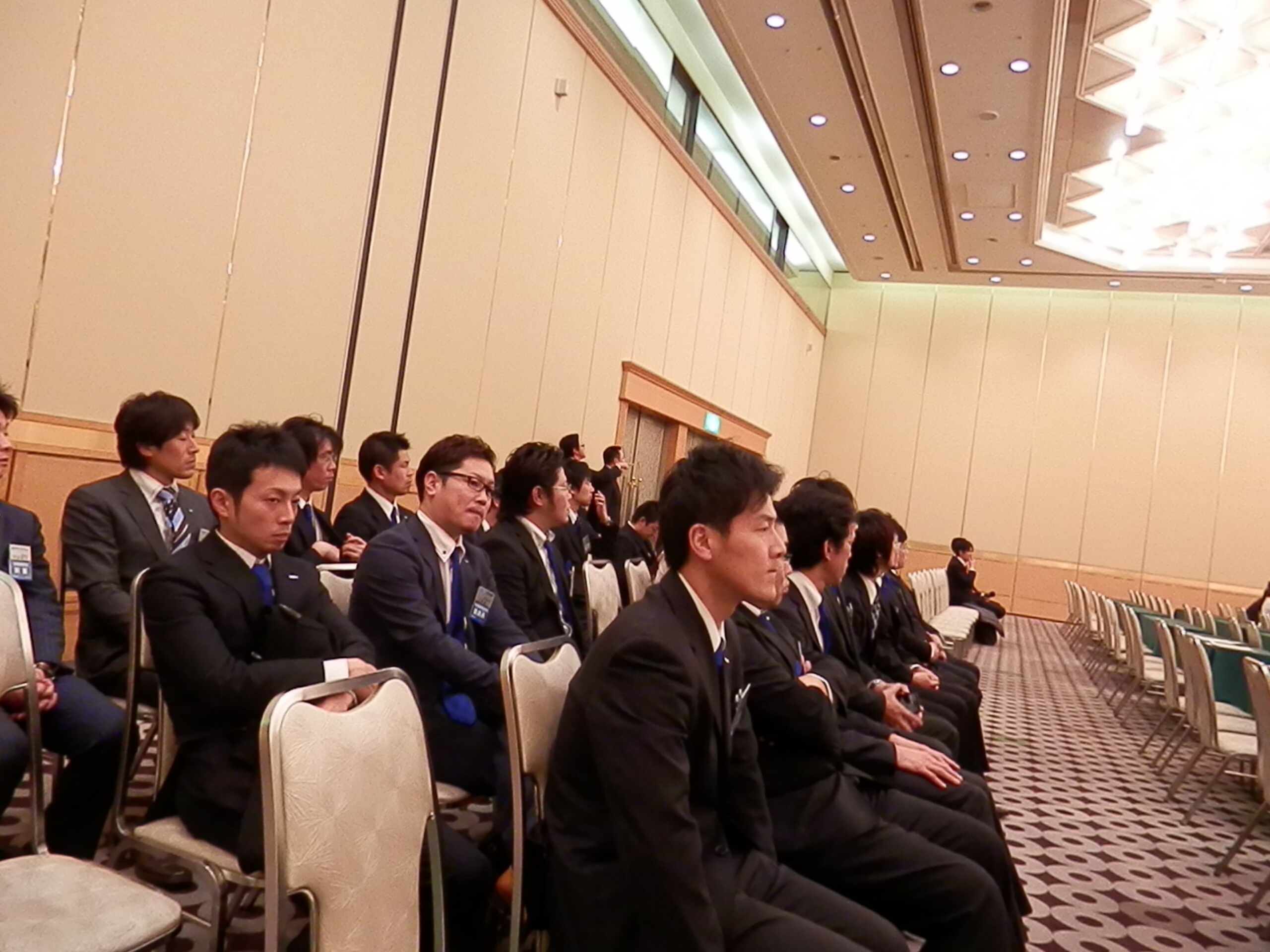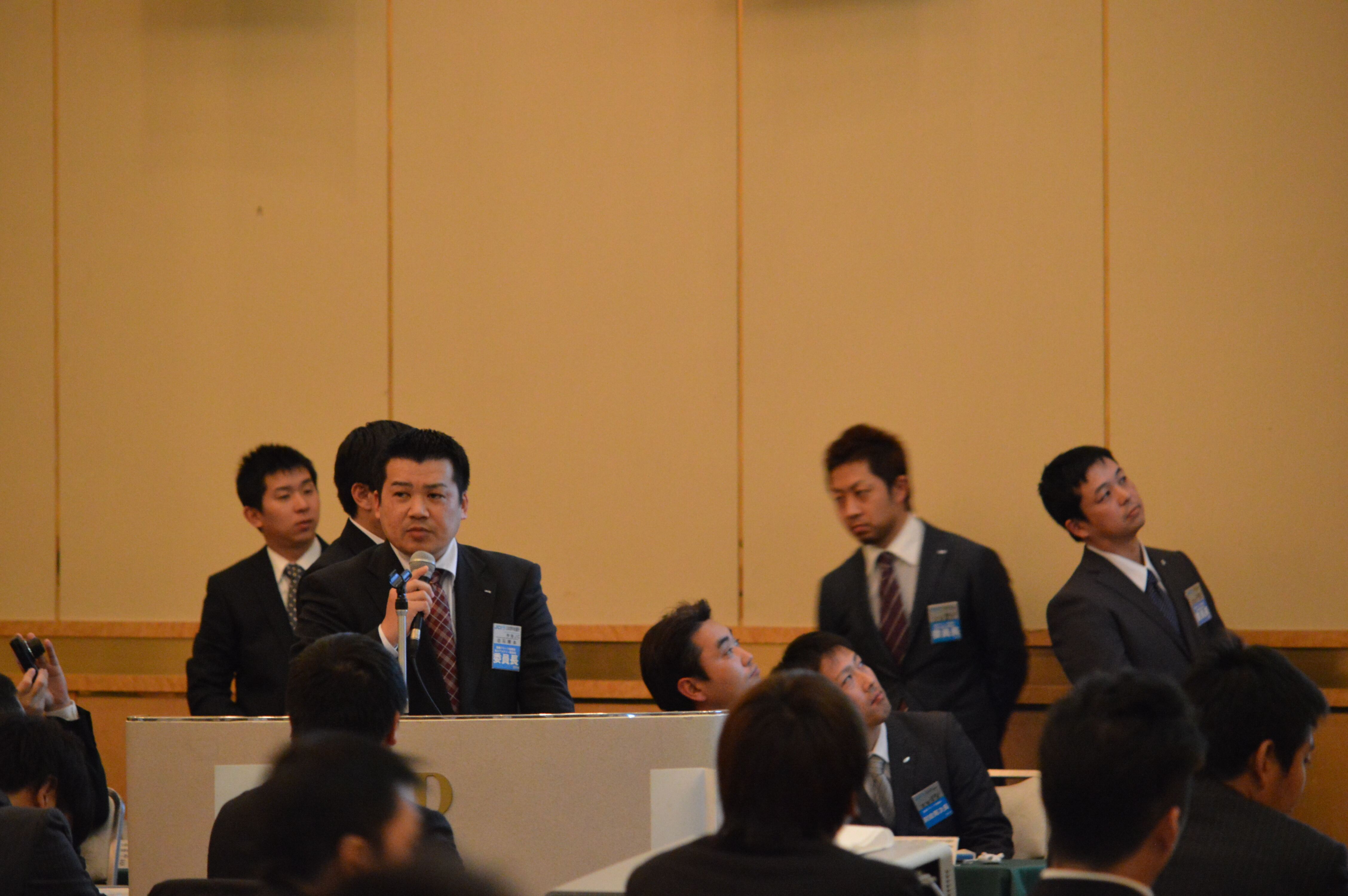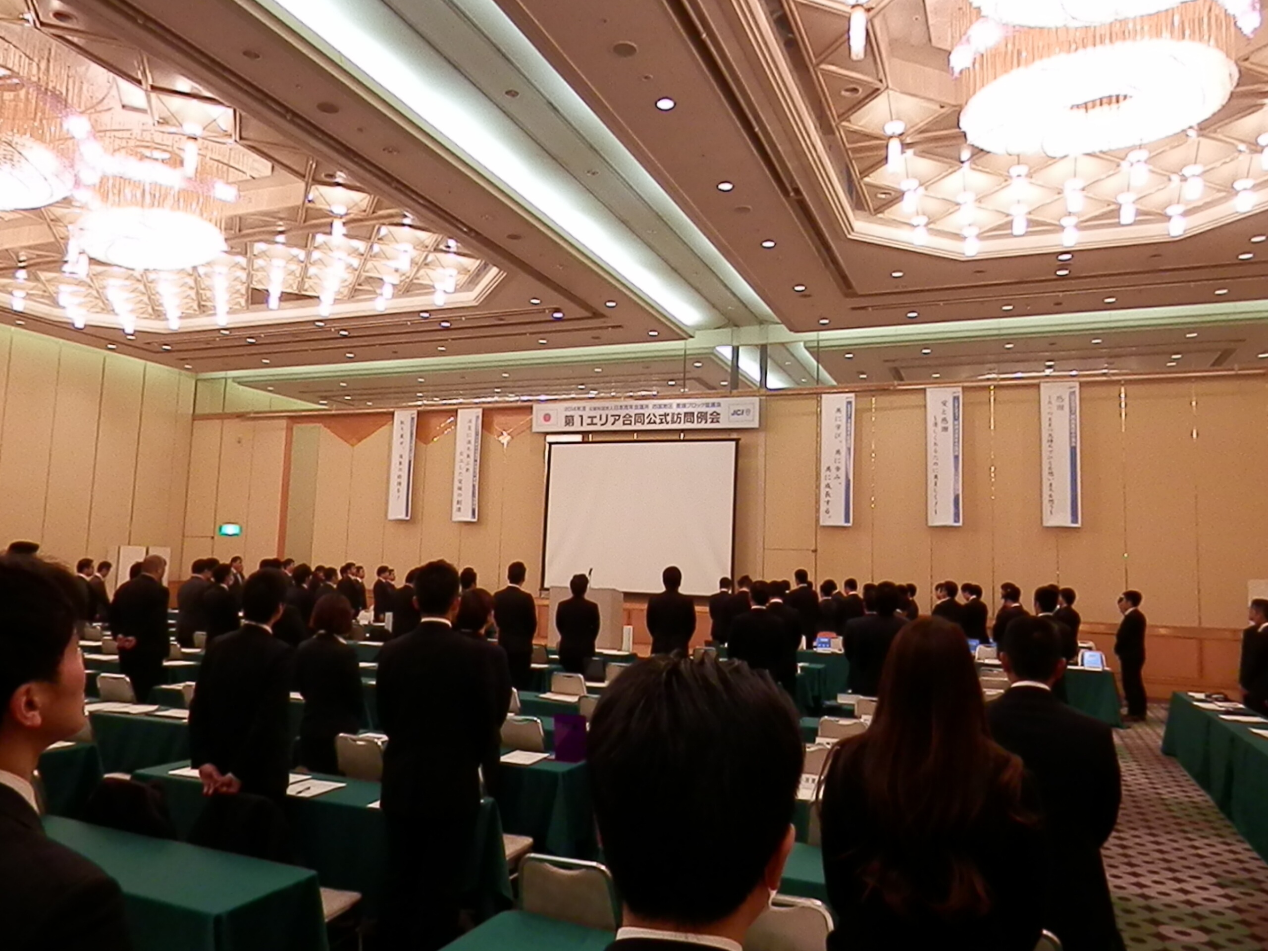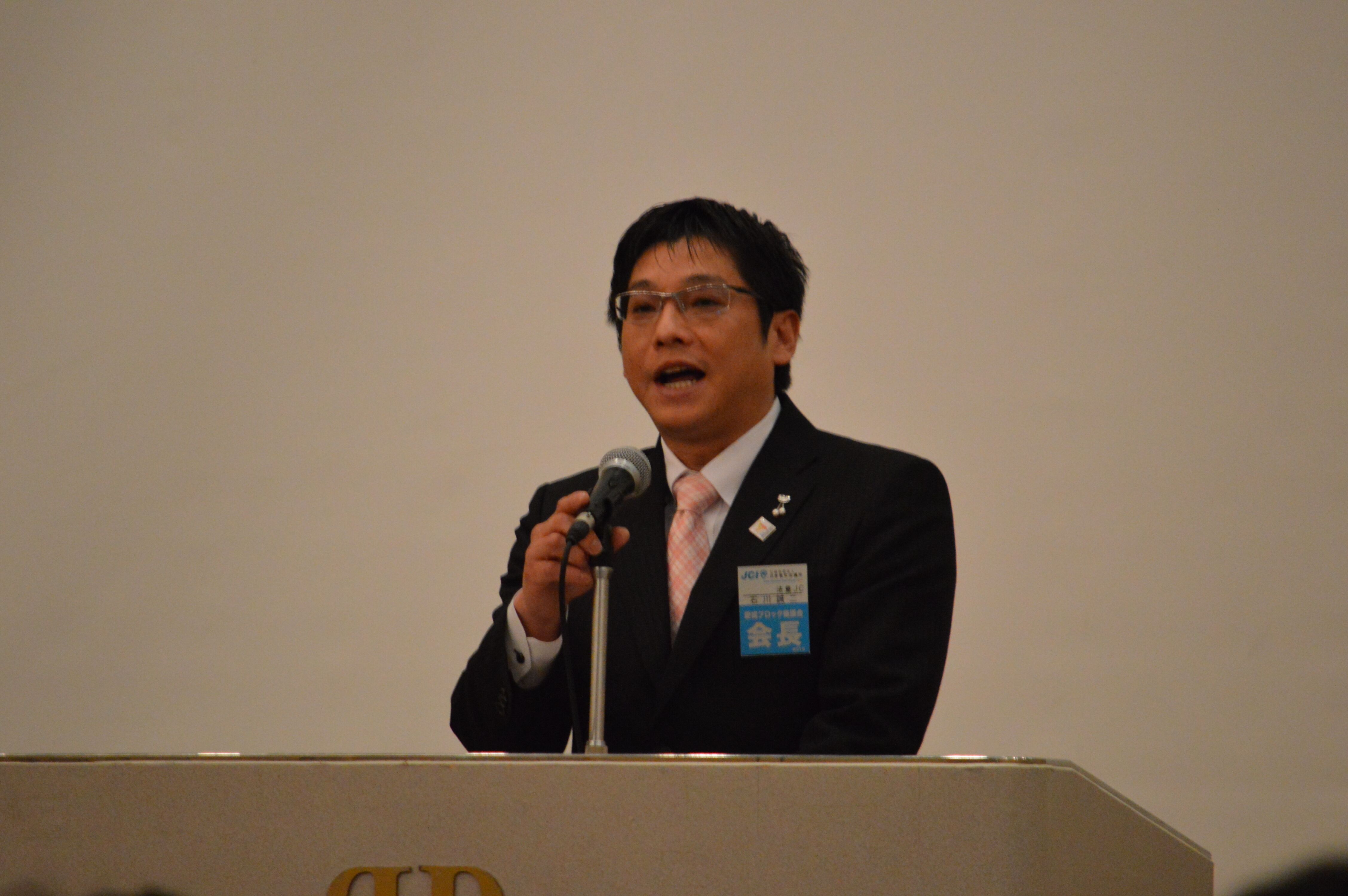 2014年2月13日(木) 2月12日 愛媛ブロック第1エリア合同公式訪問例会 2014年度公益社団法人日本青年会議所四国地区愛媛ブロック協議会第1エリア合同公式訪問例会が、2月12日(水)新居浜市のリーガロイヤルホテル新居浜で行われ、松山JCからも約30名がオブザーブ参加いたしました。法皇JC、新居浜JC、西条JCの各理事長様による挨拶では、全国大会松山大会についても触れていただき、『愛媛もひとつ!』の掛け声も。愛媛ブロックの今年度事業方針説明のあと、「第63回全国大会松山大会について」と題した例会アワーで、西村直樹理事長から松山JCキャラクター「まっとる犬」や大会テーマについての紹介、説明もありました。