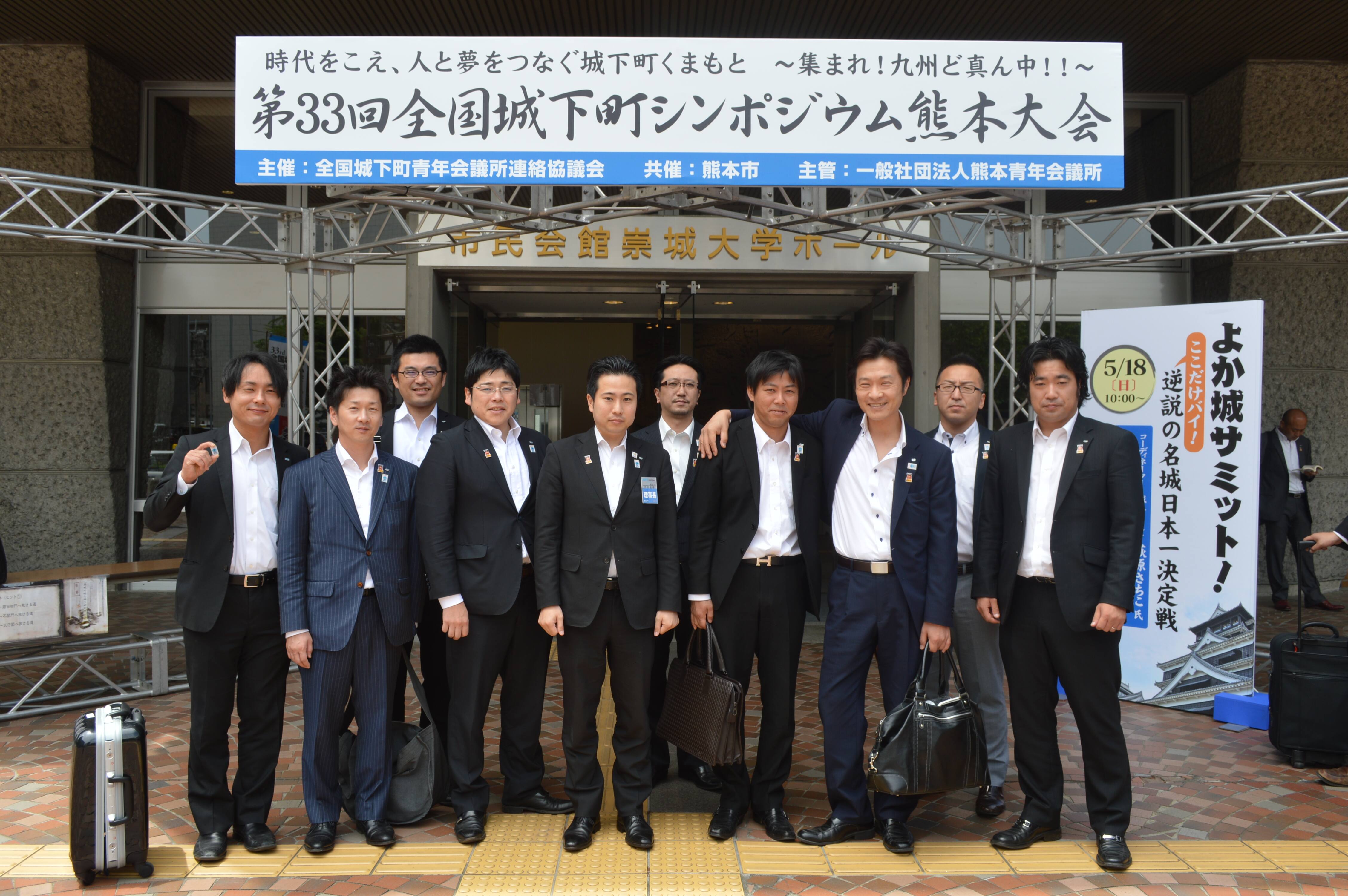 2014年5月19日(月) 5月16日~18日 第33回全国城下町シンポジウム熊本大会 第33回全国城下町シンポジウム熊本大会が5月16日~18日の3日間開催され、松山青年会議所からも多くのメンバーで参加し、全国大会松山大会のPRもしっかり行って参りました。