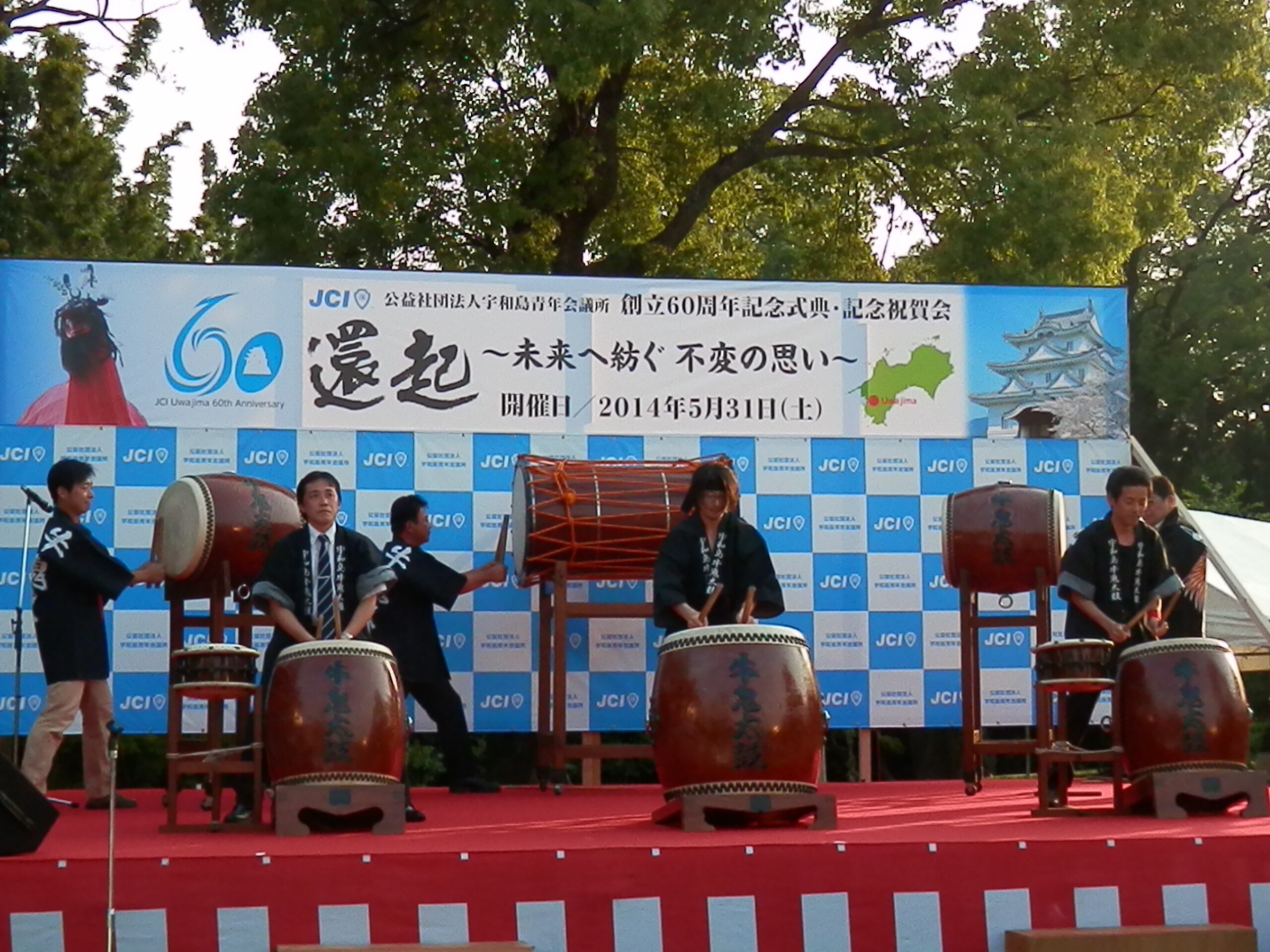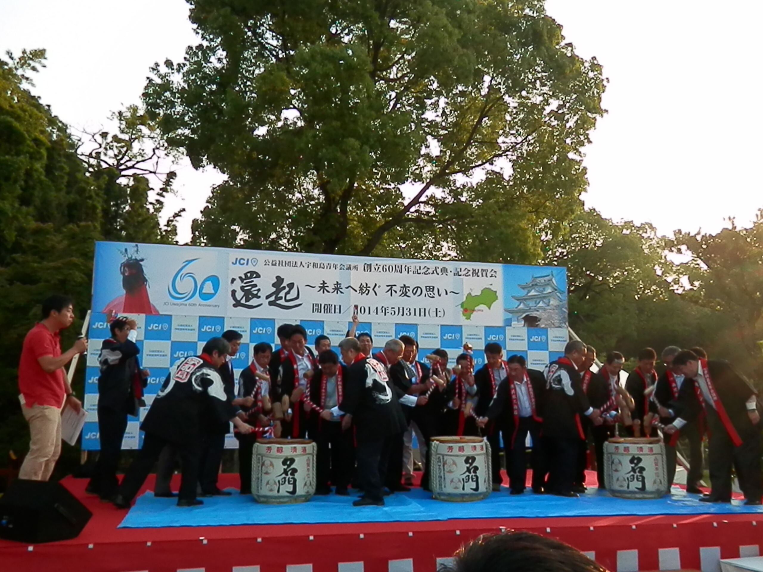 2014年6月2日(月) 5月31日 宇和島JC60周年 5月31日(土)南予文化会館にて公益社団法人宇和島青年会議所創立60周年記念式典が行われ、松山JCからもシニアクラブの先輩方含め、多くのメンバーで参加いたしました。テーマは「環起(かんき)~未来へ紡ぐ不変の思い~」。これまで築かれた歴史を継往開来し、そして新たな目標に向かって邁進していくという想いが込められているそうです。式典には多くの来賓・来訪JCの方々が参加し、宇和島JC60歳の還暦を御祝いたしました。場所を移して天赦園では、おもてなしの心がこもった宇和島ならではの鯛そうめんやじゃこ天などに舌鼓を打ち、交流を深めました。(広報戦略会議 伊藤)