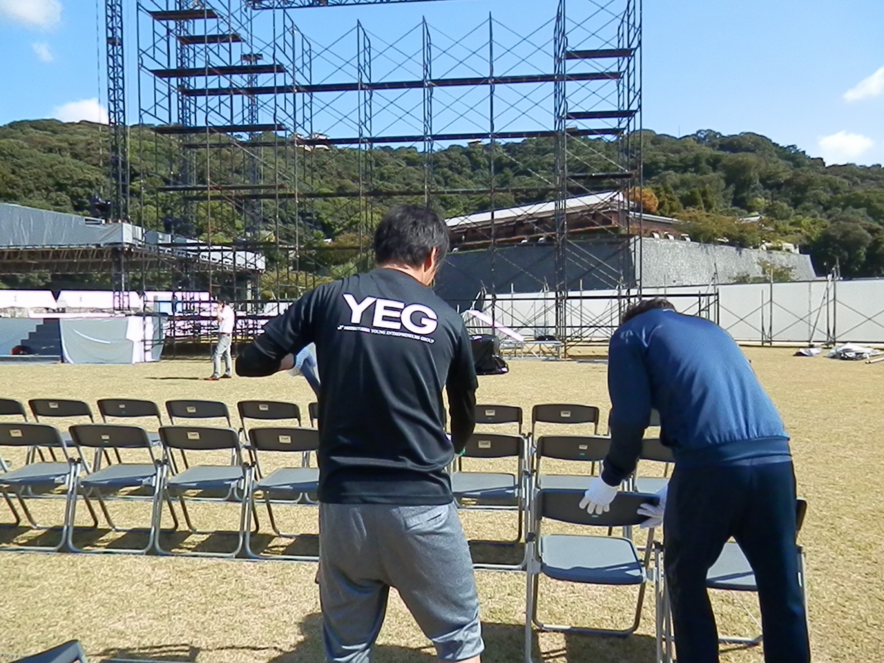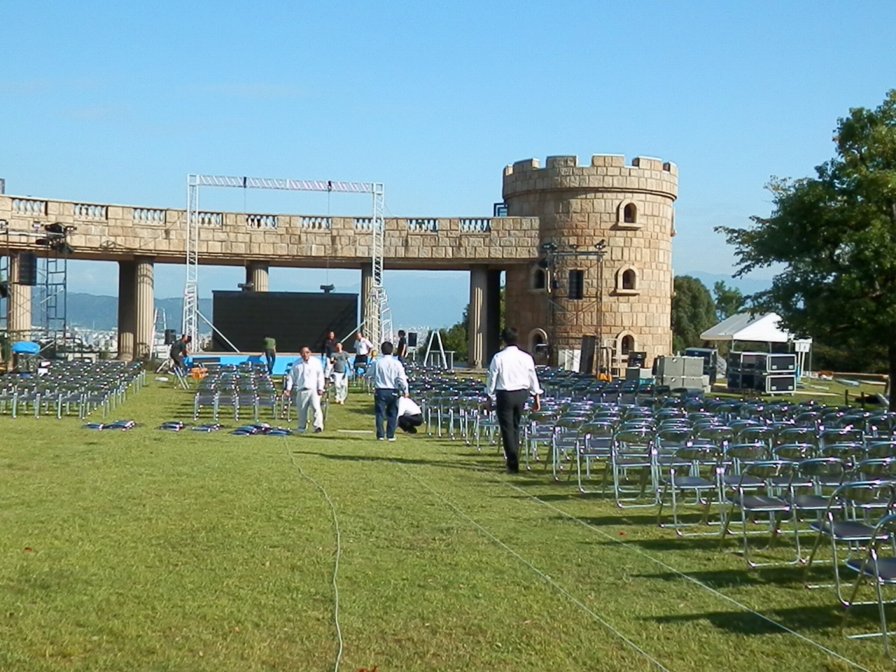 2014年10月17日(金) 9月7日~8日 全国大会直前準備 10月9日(木)から開催の「第63回全国大会松山大会」開催直前の準備風景(大会式典会場である城山公園、開会式会場である松山総合公園)です。城山公園の設営には、松山法人会青年部会、松山商工会議所青年部(松山YEG)、そして愛媛県内の副主管LOMの皆様にご協力いただきました。本当にありがとうございました。