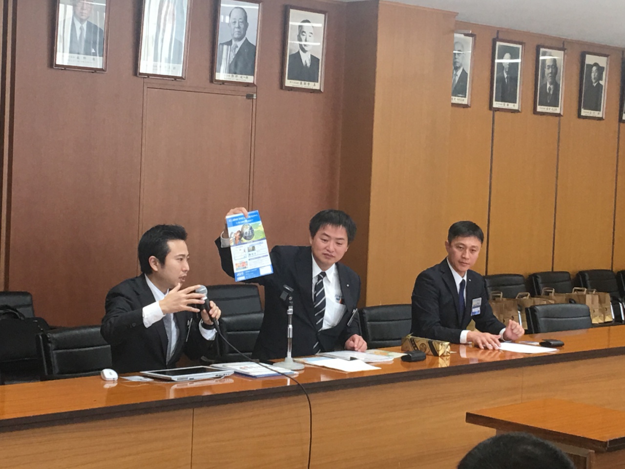 この度、愛媛県インドネシア留学生協会よりご紹介をいただき、インドネシア青年起業家協会会長 バフリル・ラハダリア氏と10名の役員の方が来県されまして、岡田理事長、西村顧問、島田専務理事にて、商工会館4F第2会議室にて、打合せをさせていただきました。