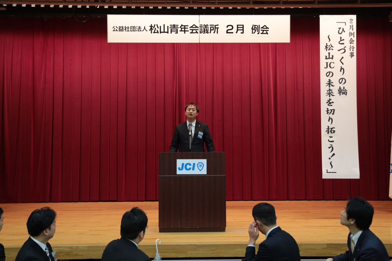 2月16日(火)松山青少年センターにて、2月例会「ひとづくりの輪〜松山JCの未来を切り拓こう!〜」が開催されました。