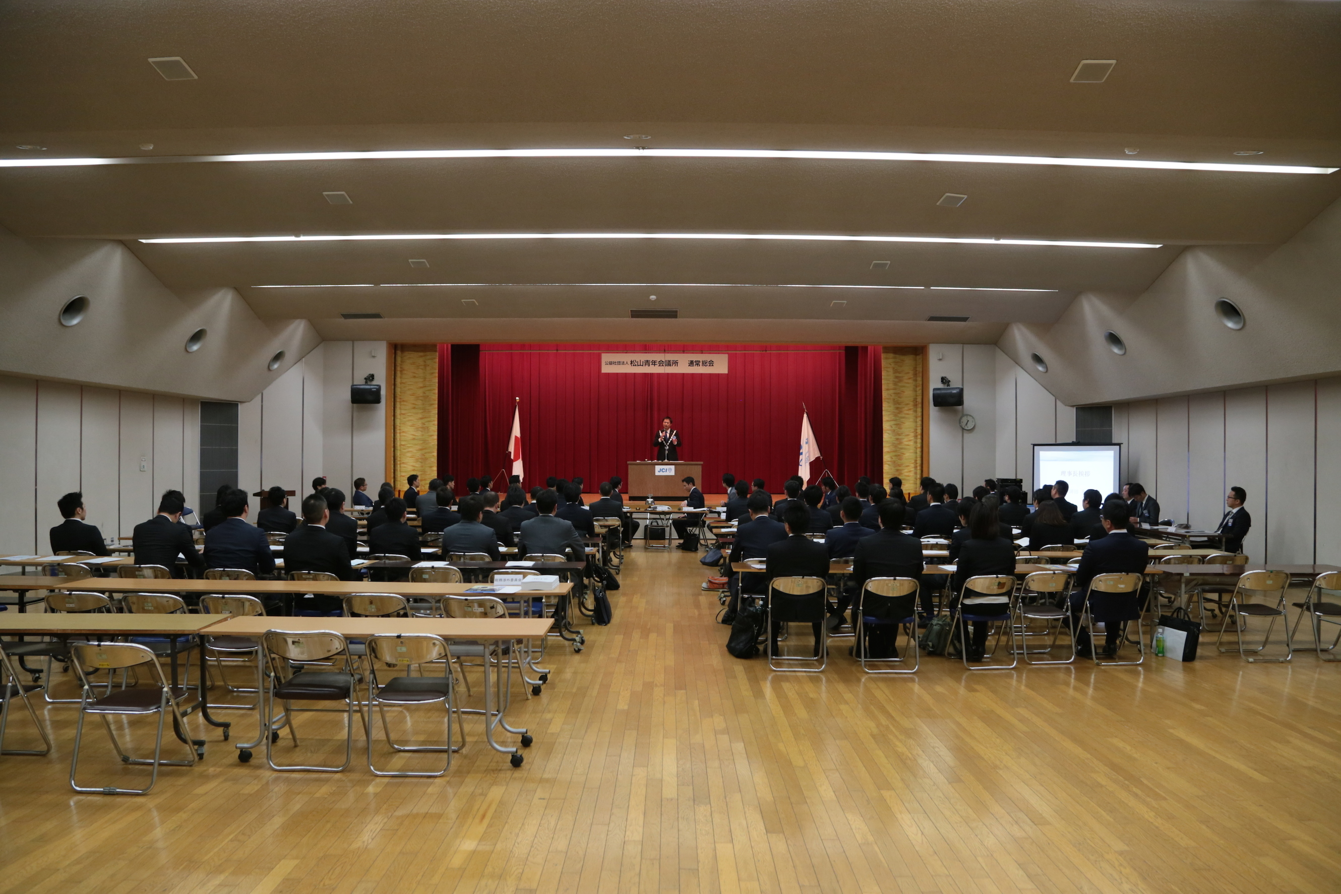 3月29日(火)、松山市青少年センターにおいて、第1回通常総会が開催されました。例年であれば総会は例会と同日に開催されますが、本年度は3月例会が第2エリア合同公式訪問例会であったことから、第5火曜日の開催となりました。