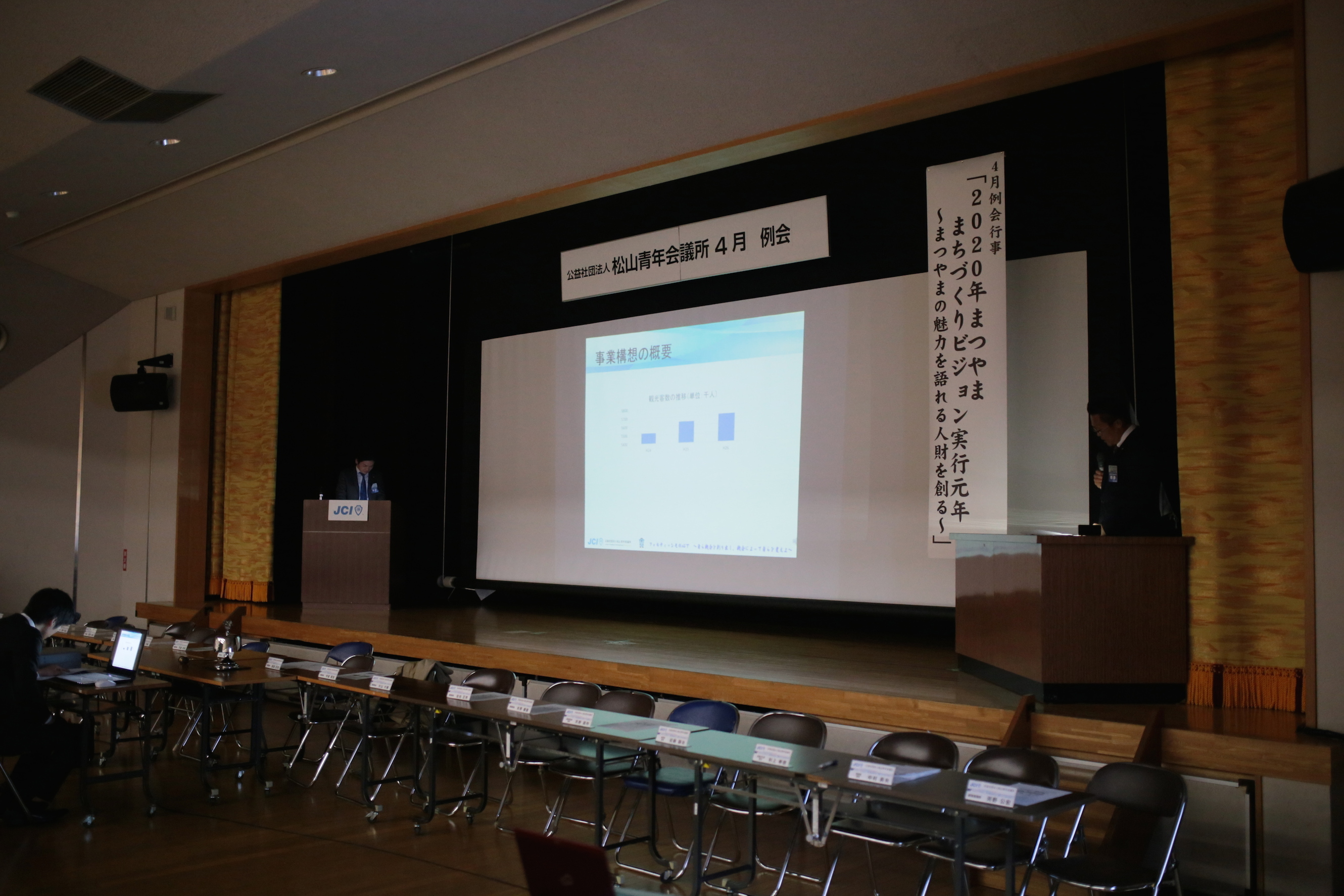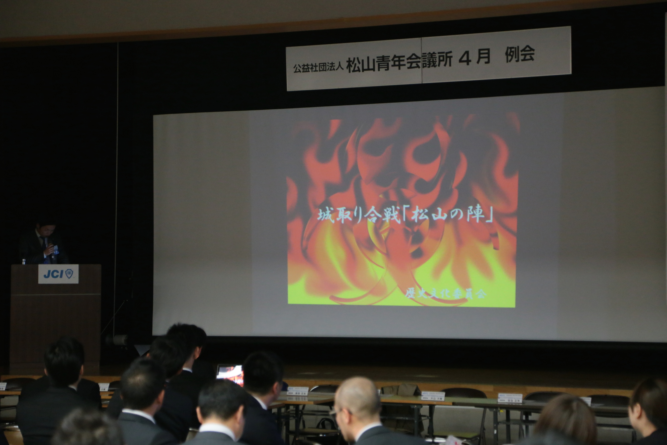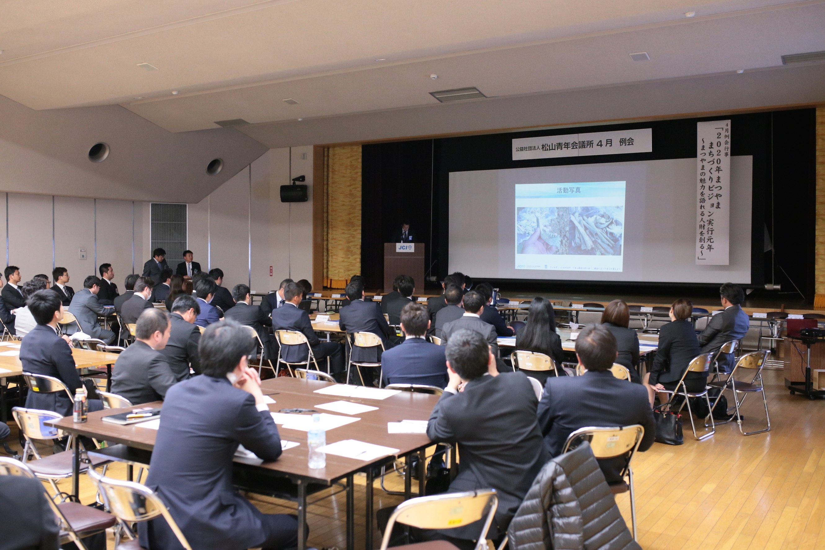 2016年4月19日(火) 4月例会 「2020年まつやままちづくりビジョン実行元年」 4月19日(火)松山青少年センターにて4月度例会が開催されました。 2020年まつやままちづくりビジョン実行元年である今年、「まつやまの魅力を語れる人材を創ることを目標とし、各委員会より様々な視点からのプレゼンテーションが行われました。 誠にありがとうございました!