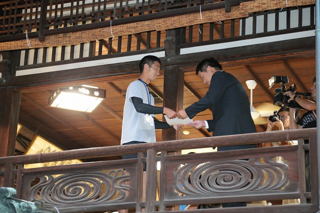 %e4%b8%80%e7%95%aa%e8%b5%b0%e3%82%8a%ef%bc%91 %e4%b8%80%e7%95%aa%e8%b5%b0%e3%82%8a%ef%bc%93 %e4%b8%80%e7%95%aa%e8%b5%b0%e3%82%8a%e3%82%82%e3%81%a1%e3%81%be%e3%81%8d %e4%b8%80%e7%95%aa%e8%b5%b0%e3%82%8a%e8%a1%a8%e5%bd%b0松山の誇るべきたからに触れ、松山の魅力を再認識していただき、より多くの松山ファンを獲得することを目的として、今年も第5回道後温泉一番走り~湯上り頂上決戦~が開催されました。今回は、ゲストランナーとしてアテネ・北京オリンピック女子マラソン日本代表 土佐 礼子さんをお迎えして、恒例の“道後温泉一番走り”に加え、家族と一緒に夏の良き思い出を作る“家族参加走り”と、第4回で開催されたロングコースをリレーでつなぐ“たすきつなぎ一番走り”の3部門で、約350名の参加者に道後を駆け抜けていただきました。最後まで心配しておりましたが、大きな事故もなく、また天候にも恵まれ、無事に終えることが出来ましたのも、JCメンバーのご協力のおかげです。本当にありがとうございました。最後になりますが、事故が起こらないように一生懸命実施マニュアルや警備計画を作成してくれた大谷幹事、本当にお疲れ様でした。ありがとうございました。