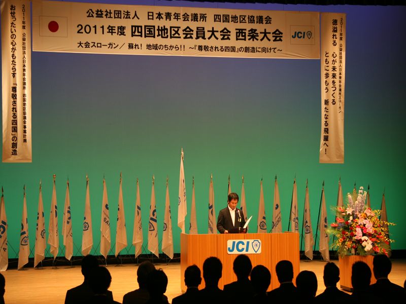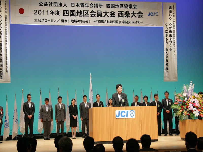 「甦れ!地域のちから!尊敬される四国の創造にむけて」を大会スローガンにして公益社団法人日本青年会議所四国地区会員大会が西条の地で開催されました。