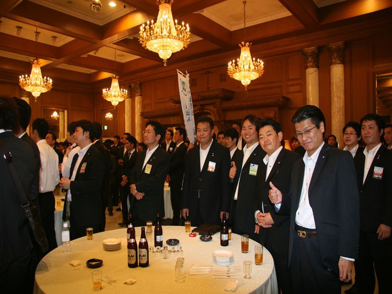 続いて別会場にて大懇親会が開催されました。私が過去出席した会員大会の中では一番多くのメンバーが参加していたのではないでしょうか。会場いっぱいにメンバーが溢れ、供に酒を酌み交わし、友情の確認を行いました。そして、地区役員の計らいもあり、大野理事長を始め全メンバーによる、全国会員大会主幹立候補の報告並びに、現地調査・対話集会のPRをさせて頂きました。