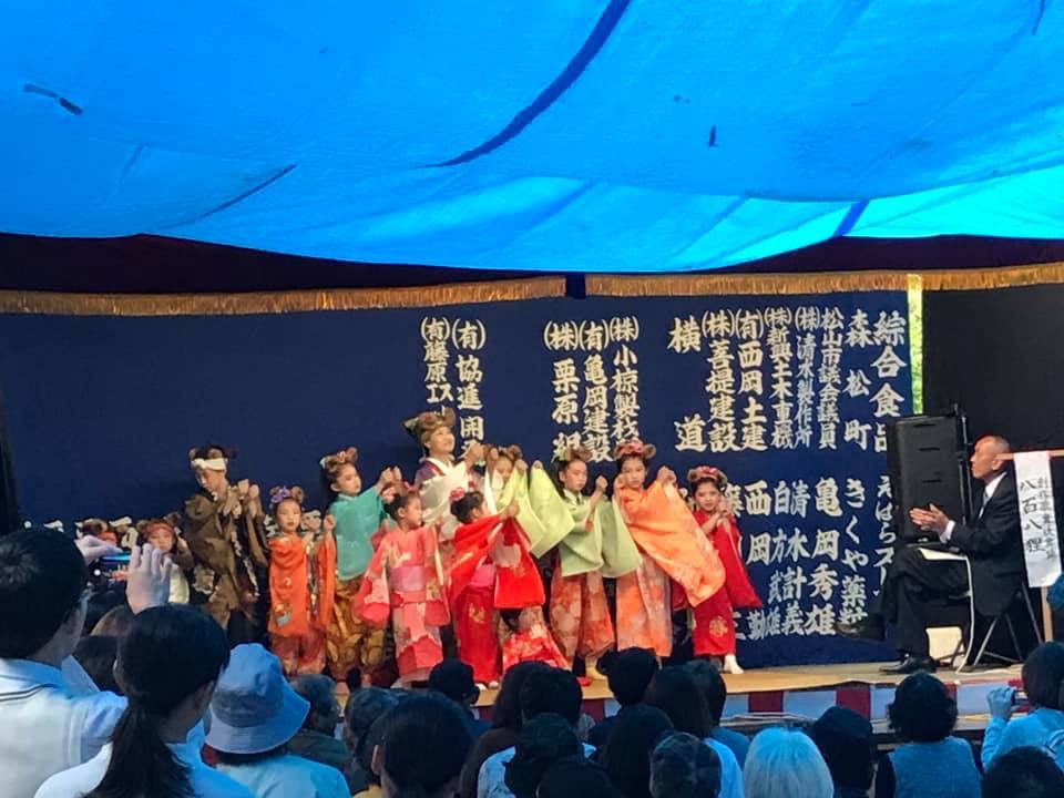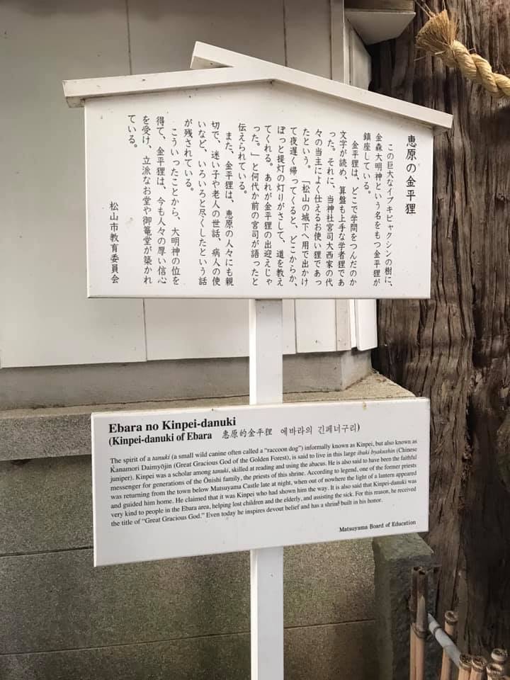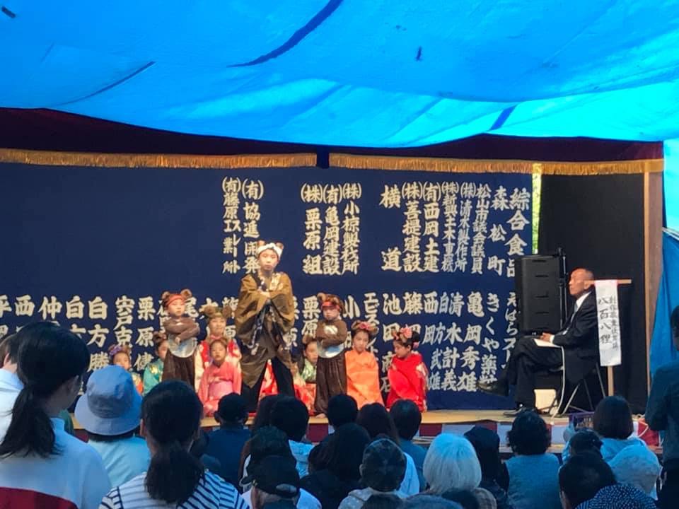 2019年4月30日(火) 大宮金平大明神大祭とたぬき 【大宮金平大明神大祭とたぬき】 今日は、久谷でお祭りがあると聞いておじゃましてきました! 会場になっている上野町の大宮八幡宮には大きな御神木が立っていて、その下にかわいい金平狸の像が建っています お祭りでは、カラオケ大会で盛り上がった後、伊予八百八狸の伝説をもとにした、創作歌舞伎舞踊が、地元の保存会さんで披露されていました! お化粧をした地元の子供たちの舞台に癒されました〜✨チビたぬきかわいい