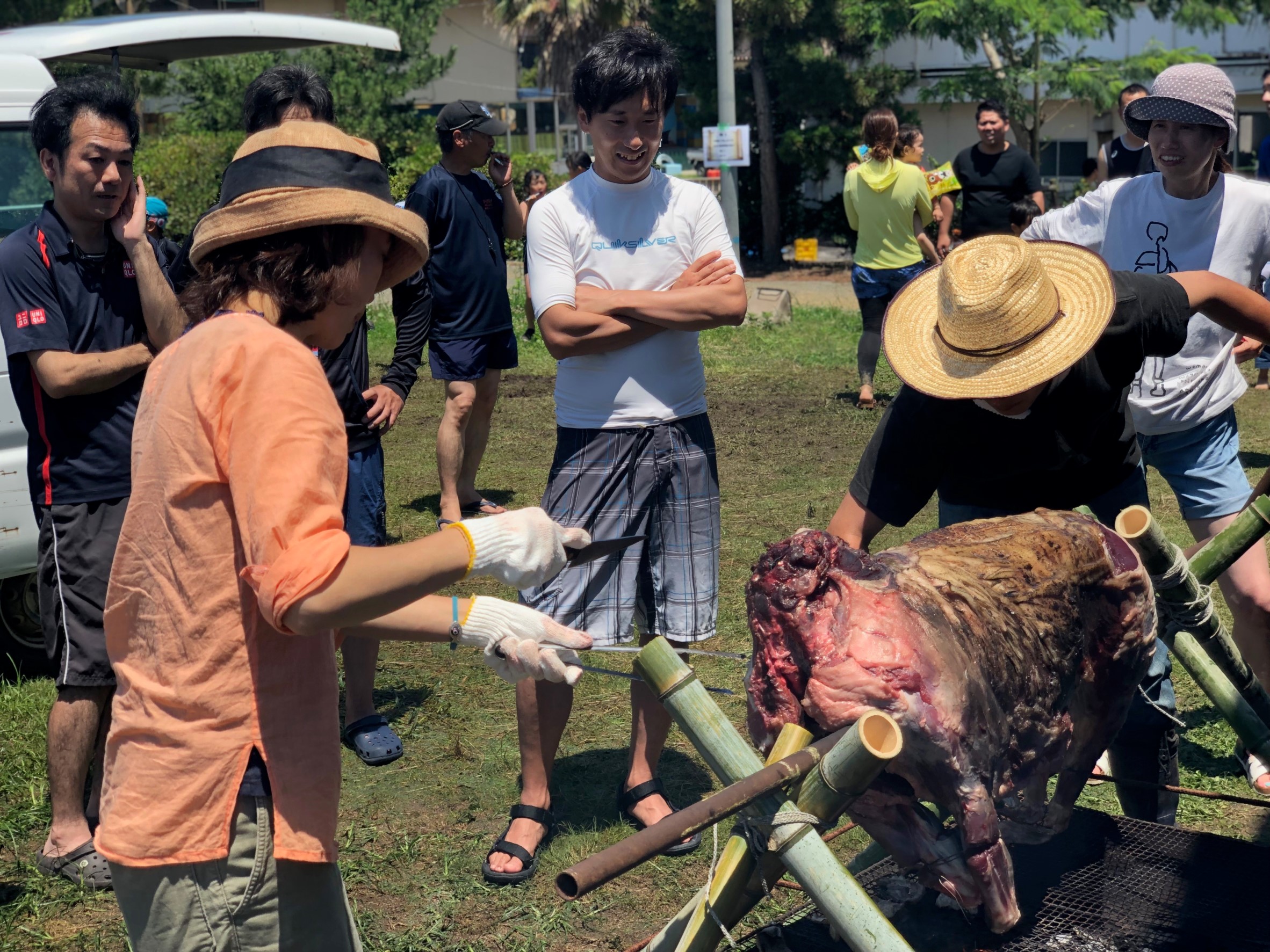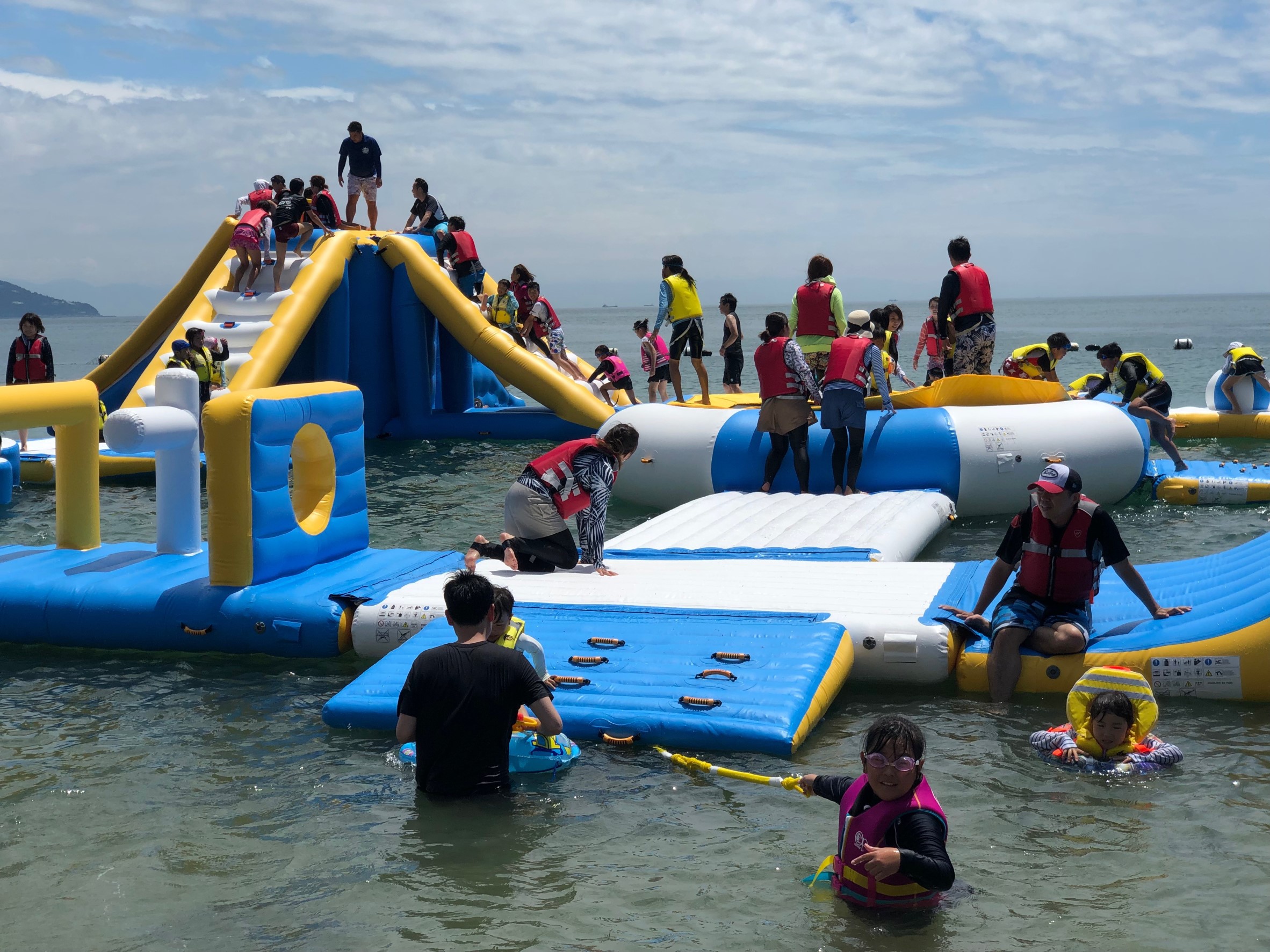 水上アスレチックに、魚掴み取り、猪の丸焼き、BBQ、クイズラリーや宝探し、かき氷……内容盛り沢山で大人から子供まで楽しめた笑顔溢れる例会となりました。